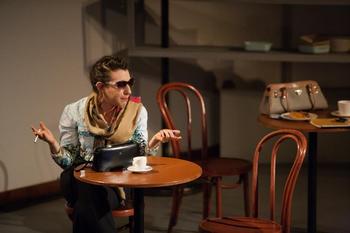 Miriam Schwartz is the entire cast of DAI (enough), playing nine different customers at that café, as well as a British television journalist who interviews all of them. Slipping into a shirt, or skirt, or jacket, with appropriately matched shoes, Schwartz uses accents, posture, gestures and pacing to make each of these characterseight women and two mento life. It is a tour de force performance, capturing the essence of each of these characterstheir worries, their joys, their quirks, and most of all, the commonality they share, in spite of their differences. At the start of DAI (enough), Schwartz is journalist Christiane Saloniki on assignment in Israel. Her recent interviews of Arabs in Lebanon brought charges against her that she was biased in their favor and could not provide fair and balanced perspective on Israeli viewpoints toward the stand-off in the Middle East. Talking with her producer in Londonwho is also her boyfriendChristiane asserts that she could not possibly be anti-Semitic, since all people of the Middle EastArabs as well as Jewsare Semites, and she herself is part Syrian. She goes over her strategy for conducting the interviews, and is ready to go ... and then ... the first explosion. Each of the other characters, the customers at the café, in turn speak as if Christiane is interviewing them, diving into monologues that lay their story and perspective bare. There is a Latina actress who claimed to be Jewish to win a movie role; a kibbutznik seeing his younger son off to military duty while his older son was left a cripple from his army service; a flamboyant, self-satisfied ex-pat living on Long Island and scornful of Israel, who has come to see her ailing mother; a Brooklyn-born West Bank settler, her many young children in tow, arguing vehemently against withdrawal from the occupied territories; a German gay man who came to Israel to be with his Israeli boyfriend; a Russian prostitute; a young American who volunteered in the Israeli army after her parents, holocaust survivors, passed away, and learns she has two aunts, also holocaust survivors, in Israel; a "raver chick" passing out flyers for a "party for peace"a party at which ecstasy erases the barriers of race, language, religion and history; and a Palestinian professor struggling to keep her son out of the influence of extremists. Serious as the overall sensibility of DAI (enough) is, there is humor woven into some of the monologues, such as Alma, the ex-pat, bragging that she has been welcomed back to Israel like the Queen of England. There also are startling insights. When Svetlana, the Russian prostitute, admits that she and her husband are not Jewish and had to pay $50 in Russia for false papers to present themselves as Jews in order to immigrate to Israel, she adds, "Can you imagine, paying $50for a paper that says you are a Jew. When in history did that ever happen before? Never!" That speaks volumes about the unique place Israel holds in the Jewish world. Warren Bowles's direction maintains the necessary fluidity to overcome the trauma as each character is literally stopped dead in his or her tracks, with no time to reflect or question what just happened, underscoring the reality that amidst constant threat of violence, even death, life must go on. Playwright Iris Bahr lived in Israel from age 13 through her mandatory military service. Perhaps that contributes to writing that is extraordinarily sharp, true to human nature, and respectful of each speaker's specific point of view about their life and their presence in Israel, whatever the circumstances. Miriam Schwartz's performance gives flesh and voice to Bahr's words. As she wordlessly slips from one character's garb into another each time the bomb explodes, we are completely convinced of her transitionor perhaps it is a resurrectionto a wholly new person. Last year, Minnesota Jewish Theatre Company launched its season with another one-woman play starring Schwartz, Becoming Dr. Ruth, about the iconic sex therapist. Schwartz was charming, and effectively conveyed the wide scope of Dr. Ruth's biography, but her work in DAI (enough) reaches a whole new level, placing her among the very best among the richly talented Twin Cities community of actors. Every element of this production works. Michael Hoover's spare set is perfect for the occasion, with shelves of potteryjars, bowls, cupsacross the back of the café signifying the fragility of life in those environs. Liz Josheff Busa's costumes perfectly represent each character and enable Schwartz' transition, in view of the audience, from one to another. Paul Epton repeatedly provides the burst of light that accompanies each explosion, while Anita Kelling creates the horrific sound of the bomb's force, each time followed by a cacophony of sirens, screams, wailing babies, and God knows what. Their work brings a visceral response from the audience, and is humbling in the face of those who have actually lived through such terrible events. Dai is the Hebrew word for "enough." The meaning of the title might be interpreted in different ways. There has been enough (far more than enough) killing. There is enough common humanity among these people, among all of us, to make a case for laying down arms. Just ten minutes with each character is enough to know them as a real and whole person, to recognize both the unique and common aspects of being human. It is noteworthy that DAI (enough) was first performed (by the playwright) ten years ago. None of the ills depicted in the play have abated, and one can easily make a case that conditions have worsened. Minnesota Jewish Theatre Company has scheduled DAI (enough) for a very short run of two weeks. That leaves little time to get the word out about this powerful play and extraordinary performance. If not too late, you will want to make this high priority theater. Otherwise, perhaps MJTC will be able to bring this production back so that a wider audience can be enriched by its