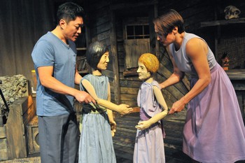 In Euripides' play, Medea is either a monstrous villain, a morally wounded victim, or both, depending on the interpretation taken by any given production or adaptation. Is she a monster who murders the two children she bore with her husband Jason in an act of revenge when he betrays her to accept the hand of a royal princess? Is she to be pitied, driven to filicide by her husband's faithlessness after he used her magical powers to achieve greatness, including capturing the Golden Fleece? Elyanow pursues a different path in The Children. What if a member of the Greek chorus, instead of standing by passively tossing commentary upon Medea's plight, intervenes and swifts the children off to safety before Medea can slaughter them? This Woman of Corinth steals Medusa's book of sorcery as well, using a spell to transport the children, Brother and Sister, to a different place and time, safely away from Medea's crazed clutches. And what if the nursemaid to these children, who has nurtured them since their birth, failing to realize what Medea is about, sees the Woman of Corinth as a ruthless kidnapper and follows them through the warp of time and space, determined to bring Brother and Sister back to their mother's arms? The Woman of Corinth, Brother and Sister, and A Nurse-Maid land in present day Maine, at a seaside cottage just as a category five storm is approaching. The Woman of Corinth hides the children from the Nurse-Maid when the local Sheriff arrives, telling them that they must evacuate the shore due to the storm. The Nurse-Maid sees the Sheriff as Medea in disguise and tries to turn the children over to him ... or her, depending on whose version of truth you follow. The Sheriff is baffled by these zealously dramatic women, surmises they must be performers at the Renaissance Fair, but when he learns that there are children hidden on the grounds he becomes frantic. Already the storm has caused a car to veer off of a bridge, perhaps drowning those trapped within. A parallel story begins to form involving two children, Ben and Lily, and two women, Becca and Joanne. The Children is gripping throughout, strikingly staged, soulfully acted, and replete with compelling language. In spite of this, at many points in its 85 minutes (without intermission) it is hard to track the leaps between the fish out of water story of the distraught Greek women, the plight of Medea's traumatized children, the contemporary story, and the Sheriff's role in bridging these. The play also makes large swerves in tone. At the start, the histrionics of both Woman of Corinth and the Nurse-Maid strike the audience as parody, prompting hearty audience laughter. As the play progresses, it becomes increasingly sober. Happily, by its end the pieces do come together in a satisfying way that generates its own logic regarding hope, love, responsibility and survival. The children in the playMedea's children, Brother and Sister, and the contemporary Ben and Lilyare portrayed by way of puppets beautifully designed by Masanari Kawahara, who had a long tenure as a member of In the Heart of the Beast Puppet and Mask Theatre. The puppets' faces are molded in the form of their respective operators, Kurt Kwan and Kate Guentzel. Kwan and Guentzel give voice to the children while manipulating their heads and limbs, creating full characters that convey their emotions with total conviction. The use of puppets underscores the understanding of the play's origins in the Medea mythology, casting a sense of universality to their vulnerability and courage. Tracey Maloney is terrific as A Woman of Corinth, acting with confidence in the correctness of her intervention, courageous and competent, a citizen who has been spurred to action with no looking back. Michelle O'Neil is her equal as A Nurse-Maid, conveying a near-crazed conviction that only in their mother's arms will these children be safe, and a paranoid-like certainty that everything and everyone is a disguised harbinger of their fate. As the Sheriff, Jim Lichtsheidl neatly moves from a small-town, matter-of-fact presence to a source of insight and bearer of legacy. Noël Raymond directs the play with a steady hand that keeps its desperate parts on track with one another, while building suspense toward an ending that is hard to predict. Joel Sass has designed the seashore cottage setting to be both realistic and fantastical, constructed of rough-hewn boards joined at odd angles, an iconic ship's wheel perched over the door, and a hidden passage that allows for travel between the plays' parallel storylines. When the storm bears full force, the roof timbers visibly crash, aided greatly by Michael Wangen's lighting and Katherine Horowitz's sound design; sound and light also combine to create a beautifully realized underwater scene. Clara Brauch shows wit in her design of the gowns for the ancient Woman of Corinth and Nurse-Maid. Watching The Children is in turns entertaining, confusing, stimulating, perplexing, and rewarding. At times the confusion is disconcerting, and it feels like there are gaps in the flow of the play. On the other hand, some confusion can be a good thing. It can prompt us to wonder what is really going on, who these people really are, and what course of action really is correctjust as these characters must wonder, just as real life is a confusing affair, even as it offers bountiful rewards. The play's inherent rewards and artfully rendered production make The Children well worth a visit. The Children continues through October 16, 2016, at the Pillsbury House Theatre, 3501 Chicago Avenue South, Minneapolis, MN. Regular price tickets are $25.00, Pick-your-price tickets are $5.00 to $50.00. For tickets call 612-825-0459 or visit pillsburyhouseandtheatre.org. Writer: Michael Elyanow; Director: Noël Raymond; Puppet Design: Masanari Kawahara; Set Design: Joel Sass; Costume Design: Claire Brauch; Lighting Design: Michael Wangen; Sound Design: Katherine Horowitz; Prop Design: Ke