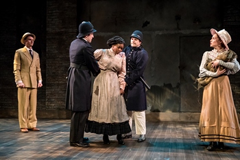 The musical is based on the 1975 novel "Ragtime" by E. L. Doctorow. Doctorow's novel has an epic scope, and such tomes rarely transform successfully into musicals. For every Les Misérables, a dozen Doctor Zhivagos crash and burn out the gate. Ragtime's creative team was more than up to the challenge. The achingly beautiful music was written by by Stephen Flaherty, the highly literate lyrics by Lynn Ahrens, and the coherent book that manages to seamlessly move among multiple plotlines is by Terrence McNally. All three won well-earned Tony Awards for their efforts. Set in the first decade of the twentieth century, Ragtime revolves around three families. Father, Mother, their son Edgar, Grandfather, and Mother's younger Brother compose an upper class white family in New Rochelle, a safe, leafy New York City suburb. Father's wealth is derived from the manufacture of patriotic paraphernalia such as flags, buntings, and fireworks. He further fulfills himself as a hobbyist explorer, accompanying Admiral Robert Perry on his final attempt to reach the North Pole. Younger Brother works in the family business but is in search of a deeper purpose for his life. The second family comprises Coalhouse Walker, Jr. a well-spoken ragtime pianist in Harlem; Sarah, a woman who fell deeply for Coalhouse but flees when she becomes pregnant with his child; and their infant son. Coalhouse's belief in the promise of America is epitomized by his purchase of a Model T Ford. Tateh (the Yiddish word for papa) and his young daughter form the third family. They are Jewish-Latvian immigrants fleeing pogroms that cost Tateh's wife her life. They arrive in America full of hope in the land of opportunity, unprepared for the destitution of Lower East Side tenement life. Into the lives of the fictional characters, Doctorow inserted key historical figures of the era: financier J. P. Morgan, industrialist Henry Ford, educator Booker T. Washington, femme-fatale celebrity Evelyn Nesbit, firebrand anarchist Emma Goldman, escape artist Harry Houdini, and both Admiral Perry and his African-American first mate Matthew Henson. These iconic individuals impact the families' fates and fortunes in ways that might feel contrived if history did not bear out that such unlikely things indeed occurred. Their stories include the killing of innocents, unfathomable racial hatred, riots in pursuit of a living wage, tawdry amusements, a woman's conscience awakened, and a taste of the American dream. The genius of Peter Rothstein's direction is to make this show, so enormous in its inception, as small as possible without losing plot, characters or feeling. Where the original 1998 Broadway production had 44 cast members, Rothstein has 14, with several smaller parts double-cast, and without an ensemble of singer/dancers. By making the show smaller, Rothstein maintains focus on the human dramas rather than spectacle. Everything in the show contributes to the journeys taken by this cast of characters, as they traverse the changing landscape of the American dream. In keeping with this sharp focus, the stage at the Ritz is bare, with two industrial-style movable stairs serving as ships passing at sea, bedroom quarters, podiums for union rallies and other locales. A grand piano marks the era's ebullient creative spirit and doubles as Coalhouse's car, symbol of his place in the propulsive forward progress heralded by the new century. The entire cast does wonderful work, making this truly an ensemble piece, but Britta Ollmann's performance as Mother is a revelation. She brings to life Mother's awakening from subservient wife to an independent woman. With her beautiful soprano, she delivers such character-driven numbers as "What Kind of Woman?" and especially, the 11'o'clock powerhouse "Back to Before" with emotion that holds the audience in a thrall. She sings the lovely "Our Children" with Sasha Andreev, as Tateh, and the two fill our hearts with hope in their vision, and sorrow for its unfilled promise. Andreev depicts the depth of Tateh's fear, hope, anger and love for his precious daughter. He and Daniel S. Hines, as Father, beautifully share "Journey On," as their two ships pass in the nightTateh's to America, Father's to the North Pole, and joined by Mother in a sublime meditation on the yearning that drives the human heart. David L. Murray also shines brightly as Coalhouse. He conveys the dignity and honorable intentions of a man who has seen the world and is ready to stake his claim on life, only to have it stripped away by the brutality of racism and a justice system that is stacked against him. When he sings "New Music," "Sarah Brown Eyes," and the stirring anthem "Let Them Hear You," our spirits soar with his. "Wheels of a Dream," sung with Sarah, played by Traci Allen Shannon, is one of the most beautiful works in the score, and in it Murray conveys Coalhouse's enormous faith in America. Shannon is lovely as Sarah, and beautifully sings the haunting "Your Daddy's Son" to her newborn child. Though she does not fully convey a radiance to render Coalhouse's yearning for her as inevitable, she projects the fears of a poor black woman in the world of white wealth. Other notable performances come from Riley McNutt as Younger Brother and Debra Berger as Emma Goldman. In their two shared numbers"The Night that Goldman Spoke" and "He Wanted to Say"they lay bare the turmoil in Younger Brother's heart. With the elimination of a larger ensemble, the show has only modest dancing, choreographed gracefully by Kelli Foster Wader. Denise Prosek, resident music director at Theater Latté Da, works magic drawing rich and varied sounds from a five-person band. Trevor Bowen's costumes are perfectly attuned to each character's station. Mary Shabatura's lighting works wonderfully to create places upon the bare stage, and makes effective use of silhouettes to frame the opening sequence. Simply put, everything in this production works. Ragtime is a triumph. If you have