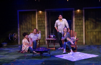 The first pair of Joneses we meet are long married Bob and Jennifer in the backyard of their nondescript suburban home. From the first exchanges between them, we know that something is amiss in their lives. Jennifer wants to talk, while Bob scorns any serious exchange and wants just to enjoy the beautiful evening. When he points out that they are in fact talking now, Jennifer responds, "Are we talking or just throwing words at each other?" It is clear which one is the engager and which one is the avoider. Soon the second pair of Joneses, John and Pony, crash through the bushes between their adjoining yards, bearing a bottle of wine as an offering of neighborly good will. They have just rented the house next door because Pony has always wanted "to live in one of those little towns near the mountains." Pony lacks any focus, ricocheting from one idea or interest to another like a pinball, and often fails to think before she speaks. John is intent on being charming but comes across as cynical. He answers all questions with jokes, and instantly changes his opinions to match someone else'san acknowledgement that he has no convictions of his own other than to be agreeable, as if playing the role of a game show host on the game that is his life. In the course of several scenes this quartet of Joneses interact in various combinations. I would say they get to know one another better, but that is not probably true, as they each find it difficult to face themselves, let alone reveal that self to others. There is flirtationand perhaps morebetween John and Jennifer, and Pony and Bob; the two guys make an awkward stab at male bonding. John ensnares Jennifer in keeping secrets from Pony that may or may not be true. All of them have privateand some publicdiscontents. Their conversations are flippant, even when the speaker is not meaning to be, as when Jennifer is recommending the physician treating the rare degenerative disease from which Bob suffers by saying "He's a specialist, but he's very good." It is interesting to note that the well-received 2014 Broadway staging of The Realistic Joneses was cast with four famous actors (after all, it was Broadway) who are close in age: Toni Colette, Michael C. Hall, Tracy Letts, Marisa Tomei. The age gap between the oldest and youngest of those four is less than ten years. This casting may have made the two couples seem more like peers. In the Park Square production, Jennifer and Bob are cast with an older pair of actors, Angela Timberman and J.C. Cutler, both doing estimable work as a couple well into middle-age who have grown accustomed to the ways in which they drive one another crazy. Their lived experience, for bother better and worse, gives them an edge over Jennifer and John, who are visibly much younger, as played by Eric "Pogi" Sumangil and Jane Froiland. The younger pair are not nearly so sure of themselves or of each other, and repeatedly give the impression of trying on slices of life for size. The difference in age is also visible enough make the prospect of a physical relationship between the older and younger Joneses feel more like a grasp at some kind of validation other than lustful desire. That said, all four actors are terrific, and they capture the spirit, needs, fears, and illusions of their characters. Angela Timberman is unsurpassed at being a put-upon partner, trying her best to be selfless in her sacrifice. J.C. Cutler does a great rendition of a man with a condition that ages and pushes him to crabbiness, who can only find solace in retreat from his life. Jane Froiland brings unfiltered energy to Pony, unable to maintain a thought, let alone an interest, yet who is truly seeking something to ground her. As John, Eric "Pogi" Sumangil portrays a guy who avoids facing his life at all costs, papering over it with jokes, diversions and deceptions. Sumangil does a great job of projecting vacuous charm that fools no one, not even himself. Joel Sass's swift and fluid direction greatly aids this production, drawing out four strong performances that maintain balance among the characters and the centrality of each of them to the course of the play. Transitions between scenes are swiftly addressed with furniture and props carted on and off stage by the cast members to create spaces on the exterior and interior sides of standard-issue sliding patio doors, on a set designed by director Sass. Costume designer Cole Bylander, lighting designer Michael P. Kittel, and sound designer C. Andrew Mayer all contribute to a production that forms a cohesive whole. Barely audible sound of crickets chirping at night are a reminder of the natural forces that persist as human beings wrestle with anxieties of their own invention. Bob, Jennifer, John and Pony may not be the best company, but in the course of the ninety minutes we spend with them we are consistently entertained by their one-liners, witty non-sequiturs, and unlikely situations. There is talk of change by all parties, but not much happens. In the end, that is probably the most realistic thing about these Joneses. The Realistic Joneses continues at Park Square Theatre's Boss Stage through October 16, 2016. 20 West Seventh Place, Saint Paul, MN, 55102. Tickets: $40.00 - $60.00. For tickets call 651-291-7005 or go to parksquaretheatre.org. Writer: Will Eno; Director and Scenic Designer: Joel Sass; Costume Designer: Cole Bylander; Lighting Designer: Michael P. Kittel; Sound Designer: C. Andrew Mayer; Properties Designer: Abbee Warmboe; Stage Manager: Laura Topham Cast: J.C. Cutler (Bob), Jane Froiland (Pony), Eric "Pogi" Sumangil (John), Angela Timberman (Jennifer). |