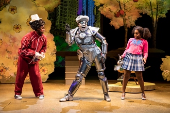 The Wiz, whose original title was apparently The Wiz: The Super Soul Musical "Wonderful Wizard of Oz" and was adapted from L. Frank Baum's "The Wonderful Wizard of Oz" by William F. Brown, with additional material by Tina Tippit, was a smashing success back in the day, winning seven Tony Awards, including Best Musical, and enjoying a four-year run on Broadway. It was reasonable to expect then that the play would become a standard, enjoying frequent revivals around the country at the sort of theaters that specialize in musicals, and that there would be lots of stagings at high schools and middle schools. Yet this show doesn't seem to be produced with the frequency of similar Broadway musicals of that period. There are probably a lot of reasons why, but I suspect that the shipwreck of a film version, released in 1978 and starring a 33-year-old Diana Ross as Dorothy, didn't help. It's a matter of opinion (like this review, like all reviews), but many people, myself included, felt that Ross was too old for the part (the director wanted to cast Mills) and critics found the movie as a whole to be patchy and poorly conceived. It bombed at the box office (though apparently later developed a cult following) and for a long time the property lost its burnish. It seems to have disappeared, at least until The Wiz Live! resurfaced on NBC in 2015. Anyhow, it's back! And I tell this story to emphasize just how thrilled I was when Children's Theatre Company of Minneapolis announced that they would be staging the The Wiz in a joint production with the Twin Cities' legendary Penumbra Theater. I waited 42 years to see this show, and I was not going to be miss it this time around. The first thing to say is that the CTC/Penumbra collaboration does not disappoint. That is not to say that it is flawless, but it is witty and sweet and energetic. It's got a hands-down stellar cast led by Paris Bennett and Greta Oglesby, and it's got the fabulous Sanford Moore, an artist at the peak of his abilities, as its musical director. Bennett, who plays Dorothy with a great goofy smile, brings a classic belt to the uptunes and luscious full-bodied singing. Oglesby is delightfully jaded as a cackling Evillene, and Dennis Spears gives the Tin Man a wicked robotic swagger. In fact, Spears seems to capture the giddy spirit of the original play and the timesThe Spirit of '75, if you will. There is something appealingly innocent about this version of the classic tale of a girl who grows bored with life on a Kansas farm and dreams that a twister blows her away to a magical faraway landin this case, Manhattanwith talking scarecrows and lions afraid of their own shadow. The tinted projections of Coney Island and Chelsea brownstones and Harlem subway stops reminds us that it was a different New York back then: perhaps less glamorous, certainly less orderly, but in some ways more exciting for being utterly unpredictable. The Dorothy of The Wiz is not nearly so melancholy, nor as emotionally vulnerable as Judy Garland is in the movie. She's a bright-eyed explorer, one who wants to get home, yes, but who is also brimming with curiosity and delights in meeting, and dancing with, new friends. Like many of the characters in The Wiz, Dorothy sings a lot more than she talks: the book consists mainly of clever but very brief scenes that serve primarily to connect one musical number to the next. That's fine, because the key to the show's enormous appeal has to do with its flat-out gorgeous score by Charlie Smalls. How refreshing it is to see a musical where every song sounds different from the one before it, and where so many of the tunes are memorable. You only need to hear "Ease on Down the Road" once and it will be running through your head all week. Was there even one kid in my high school thespian club who didn't recognize the tune to the gospel-like "Home"? If the songs are dope, Sanford Moore has a lot to do with making the music soar in this production. I am not saying that actor-singers like Oglesby and Bennett and Dwight Leslie (as The Scarecrow) don't have terrific pipes; they do. I'd pay to hear them sing without accompaniment. But can we just for a moment pause and reflect on just how smooth and rich and lovely Moore has made so many Twin Cities voices sound over the years? Can I ask, are we giving this local treasure enough love? I mean to say, attention should be paid to Sanford Moore. There are young kids in the show, too, and the kids in the audience loved seeing them up there. And whenever Evillene came on, they were booing and hissing. I mentioned the Tin Man's swagger, but to reiterate, Spears in his silver suit and his one stiff (unoiled) leg is just on fire up there. I was afraid he was going to melt the witch with just one long slow look. Now with all this goodness, what could be improved? Well, the choreography could be more ambitious. The large group numbers, which have to factor in the non-dancers, are fine and fun. Patdro Harris adds some witty '70s funk gestures every now and then, and that works. But this score has long instrumental intervals that were designed for serious dancingserious, complicated, elaborate dance sequences. Harris has assembled a corps of top-notch, well-trained, very capable dancers, and I feel they are a little bit wasted. They are never given the opportunity to really show their stuff. I wanted to see these dancers show what they are capable of, to have a shot at bringing down the house, as the singers do so often in this show. In the end, Harris plays it a little too safe for my tastes. CTC has an enormous stage with depth and high ceilings, but Vicki Smith's set somehow makes it seem small. I would have preferred a bolder, more deliberate aesthetic. I did love the blown-up photos of New York sights and street scenes that are projected onto a giant upstage scrim. At the same time, some of the other projectionsthe twister, the flying monkeysare a little too literal for my taste. Possibly it 