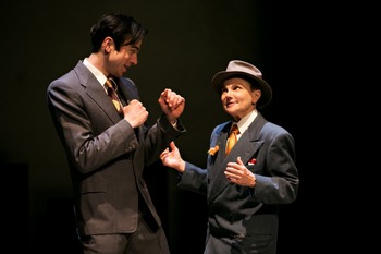 Both Johnson and Schmeling were in matches labeled "The Fight of the Century": Johnson against the "Great White Hope" challenger Jeff Jeffries and Schmeling to regain his title against a new World Champion, Joe Louis. As a black man, the fact that Louis could hold this title was the direct result of the barrier broken by Johnson, drawing a powerful link between these two fine plays. Dancing with Giants is, however, about more than Max Schmeling and more than boxing. It is foremost about his Jewish manager, Joe Jacobs, whom Schmeling nicknamed "Yussel the Muscle"Yussel, the Yiddish version of Joseph, and muscle, an ironic sobriquet, given Joe's small, unprepossessing stature. The two men had a unique friendship that endured in spite of extreme antisemitism under the Nazis. Joe Jacobs is really the heart of Dancing with Giants. He is shown as an eternal optimist who believes that by raising people's spirits and through sheer will, he could make the impossible happen, even among some of the most powerful men on earth. He himself declares, "I may be small, but I dance with giants." Joe Jacobs is a smart wheeler-dealer who used his gifts for song, dance, cracking a joke, and fast-talking business savvy to rise from the son of a German-Jewish immigrant to the top among New York fight promoters in the 1920s and 1930s. His dapper attire and ever-present Cuban cigar make up for his diminutive stature. In that era, New York City is the world epicenter of professional boxing. When Max Schmeling, as the German champ, arrives in New York in 1928 to pursue the world championship, he faces such rabid anti-German sentiment that he cannot even safely leave his steamship. Jacobs comes aboard, ingratiates himself to Schmeling and winds up being the German boxer's manager. He lines up a fight in Yankee Stadium against then-champion Jack Sharkey, and when Schmeling is knocked down by a below-the-belt punch, Joe cries foul. Joe grabs the microphone and stirs up the crowd to chant with him "We wuz robbed," coining a phrase still in use today. The referee is forced to disqualify Sharkey and make Schmeling the new World Heavyweight Champion. Schmeling returns to Germany, Joe in tow, but Germany has begun shifting in dark directions as Hitler and the Nazi party rise to power. Schmeling is embraced by Hitler and is willing to tolerate his Jewish manager, in spite of his propagandist Joseph Goebbels's strenuous objections. Hitler is not depicted in the play, except as a garbled voice over phone and radio lines, but Goebbels is very much a presence, charming in his way until it becomes clear where his agenda leads. Schmeling, stoic by nature, somewhat enjoys his celebrity and the belief that he is helping his fatherland, but he remains loyal to Joe. Joe believes that together, he and Schmeling might get through to the Nazi powers and change the course of history. And the course of history is changed with two matches Joe arranges between Max Schmeling and Joe Louis, but not in the way Joe had hoped. Even the irrepressible optimist, Joe "Yussel the Muscle" Jacobs, cannot stare down the Nazi march to world domination and annihilation of Jews and other despised classes. Dancing with Giants is a character study of the remarkable, little known Joe Jacobs, as well as an examination of the way in which celebrity and manufactured images are used to sway public opinion, about the possibilities of friendship and honor to overcome forces of hatred, as well as a fascinating window into the world boxing stage in the 1930s. It is one thing morean opportunity for an all-out dazzling star performance. That performance comes from Tovah Feldshuh, the playwright's sister, as Joe Jacobs. Ms. Feldshuh has a long resume on the New York stage that includes four Tony nominations (her first for originating the role of Yentl, before Barbra Streisand claimed the property and the role for the hit movie). She also has roots in Minnesota, having spent time at the University of Minnesota and Guthrie Theatre early in her career. Playwright Feldshuh, who also directs this production, states that he did not write the part of Joe Jacobs to be played by a woman, let alone his own sister. However, after completing it, he pondered who in the universe of actors might be right for the part, who had the talent and the presence to bring Yussel to lifeand a flash of light brought his sister to mind. Some might call it nepotism, but not those who see Ms. Feldshuh on stage as Joe Jacobs, moving with the lupine grace of a song-and-dance man, slapping out the brash comedy, just self-effacing enough to allow us to love him, and establishing before our eyes this strange, magnetic man's unstoppable will. It is a stellar performance. Fortunately, the rest of the cast are excellent, and hold their own quite well against Ms. Feldshuh's powerhouse turn. Sam Bardwell captures Max Schmeling's serious nature, his belief that boxing is an art, and his determination to pursue that art without sacrificing his standards or virtue. His loyalty to Joe and the friendship he develops with Joe Louis, both have the ring of authenticity. He portrays Max's vulnerability through the one way in which he can be hurt: through his wife, a weakness on which Goebbels capitalizes. Bardwell also has the handsome visage to easily serve as the Nazi's idealized man. James Cunningham is splendid as Goebbels, ingratiating himself with charm, making light of any malice intended by the Nazis, and gradually revealing the true colors and treachery within. Ricky Morisseau has the smallest part as Joe Louis, but carries the role persuasively. The design team for Dancing with Giants have done an excellent job of creating a fluid set, with frequent use of projections to establish place, period costumes, evocative lighting, and crisply delivered sound. Kudos go especially to Ms. Feldshuh's hair stylist, Laura Adams, and to Foster Johns as dialect coach, with assistance from Bradley Greenwald on the German d