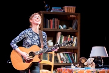 First things first, that peculiar title. Why did Jonatha's mom have four noses? They were prosthetic noses, replacements for the nose she lost, along with much of her face to remove horrendous tumors that had virtually spread from ear to ear. Why did the tumors get so bad before being removed? Jonatha's mom was a devout Christian Scientist, believers that humans are spiritual, not material, beings and therefore disease and bodily pain are not real, but are illusions to be cast out by prayer. However, after twenty years of spreading, she succumbed to surgery, losing her nose in the process. But she never abandoned her Christian Science devotion. Since she traveled from her home in Maine to the west coast for the surgery, she referred to that experience as her "California dream time," as if it never really happened. Yes, Jonatha's mom was a characterand a published poet, and a clown. The latter does not mean she joked around (though she did), but she actually took classes on clowning, sometimes showing up in the neighborhood in clown make-up, wig and costume. She found great humor in her four noses, taking photos of them lined up on a baking sheet, like so many scones. It was probably hard for Jonatha's family to tell when her mom slipped into dementia, because in some ways she was always detached from reality. But she knew that she was detached, and that her perspectives were unique. She regularly would say to Jonatha, whom she had given the nickname Boolie, "Boolie, that's good, did you get that down? We can make it a play, it can be on Broadway!" Jonatha indeed did get it all down, and while it's far too quiet and intimate an affair for Broadway, it fits perfectly in the cozy Jungle. Brooke begins with some background on her mother's childhood and younger years, jumps quickly to her adult life, replete with an odd mix of dramatic eccentricity and blind devotion to her Christian Science faith. After Brooke's father died and her mother began to decline, she lived, for a period, in a residence for Christian Scientists with ailments or disabilities, though they denied the presence of those conditions. With no possibility of any intervention to address her mother's growing health problems, Jonatha moved her mother to an apartment in her building in New York City, and became her primary caretaker for the last two years of her mother's life. The monologues, and songs that illuminate them, become increasingly fraught with pain and sadness, though throughout, maintain a chord of humor, the great tonic that helps us through the hardest of times. As a singer-songwriter, Brooke has long demonstrated a gorgeous soprano that can be clear as a bell or mournfully throaty, expressing a vast range of feeling. What could not have been known is that she has the same marvelous range of expression as a storyteller, bringing her mother to life, and recreating for her rapt audience, every feeling she had toward her mother. Though they run the gamutBrooke is disarmingly humanthe overriding feeling is love. Brooke has no qualms about describing her mother's strange ways (such as her obsession with the movie The Red Shoes), or her frustration with her mother's unwillingness to give up on Christian Science even when the evidence was that her pain and disease were real. She bluntly describes the hard work that went into caring for her mother, including an extended segment on poop management. Nonetheless, this is never one of those programs where adult children take the stage to bewail the burdens placed upon them by insensitive or uncomprehending parents. It is, from start to finish, an unvarnished love letter from a daughter to her mother. Brooke accompanies herself on guitar and piano, and for the heartbreaking song "Time," on an mbira, with understated musical embellishment provided by Rebecca Arons on cello and Sean Driscoll on guitar (Joe Elliot replaces Driscoll for the last two weeks of the run). The sound quality (Paul Mitchell, sound design and engineer) is exquisite, giving both vocals and instrumentals a crystalline purity. Brooke appears in a simple costume of jeans, a trim-fitting long sleeve paisley T-shirt, and sneakers, appearing like anyone we might spy sipping a latte at Starbucks or browsing the stacks at the public library. Jeremy B. Cohen has worked with Brookes as director of My Mother has 4 Noses from its inception, and it is hard to discern where his contributions begin, as we feel like we are watching Jonatha Brooke comfortably being herself. But one suspects that he played a big role in keeping the through narrative focused and finding just the points for emphasis. Running an hour and forty-five minutes (including a fifteen minute intermission), this may not be a show for everyone's taste. It is quiet, deeply personal, and lacks what some might call "action." What we have instead is partnership with an artist who bares her heart and unleashes her wit to share with us this remarkable woman, this mother with four noses, who made her life uniquely her own, and enables us to feel the strength of love that bound that mother and her daughter together. It leaves us with a beautiful feeling, a gift Jonatha Brooke gives her audience in this very special musical theater work. My Mother Has 4 Noses, through March 4, 2018, at the Jungle Theater, 2951 Lyndale Avenue S., Minneapolis MN. Tickets are $30.00 - $45.00. Seniors (60+) and students, through undergraduates, $5.00 discount. $25.00 public rush and $20.00 student rush (1 ticket with ID), for unsold seats two hours before performance at box office. For tickets call 612- 822-7073 or go to www.jungletheater.com. Writer: Jonatha Brooke; Director: Jeremy B. Cohen; Set and Costume Design: Sarah Bahr; Lighting Design: Bill Healey; Sound Design and Engineer: Paul Mitchell; Projection Design: Phillip O'Toole; Stage Manager: John Novak; Technical Director: Leazah Behren; Production Manager: Matthew Early. Cast: Jonatha Brooke (herself) Band: Rebecca Arons (