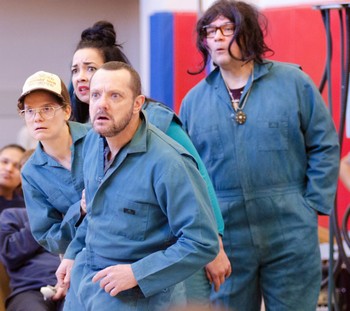 The play is set in a mythical car wash at the corner of a mythical Park Avenue and Lake Street. This is not to be confused with the actual car wash located at the corner of Park Avenue and Lake Street in midtown Minneapolis. We know they are not the same, because we are told as the play opens that the car wash on stage is in an upscale resort town, with well-heeled customersnot the down-at-heels ambience one finds at the Park and Lake in Minneapolis. The resort setting is important for one reason, namely that housing there is so high-priced, the car wash employees can't afford to live there. For that reason, they all live together in a ramshackle dormitory provided by the car wash company. Here we have a classic sitcom premisea group of colorful co-workers who appear to have no life apart from one another, at least none that lasts longer than a half hour episode. The head of the operation is the manager Manny, a Filipino who realized his "American Dream" by rising from car scrubber to manager. His employees include street artist Thor, socialist intellectual J., bicep-flexing lesbian Pony Boy, wannabe songstress Teela, gentle Selby Dale who offers a prayer to soothe any problems, Greeken, a grouchy immigrant who rants about the urban legend that an octopus is trapped in the car wash's plumbing, and Lolly, a self-possessed gal who is the car wash's assistant managermeaning she gets to sleep with Manny, when he can get away from his wife. The eighth of the employees is Jack, a gentle soul, simple and kind, the only one who dreams of nothing better than the life she has: for Jack, this is her bliss. Most of the actors are double cast, so aside from their car wash personas there are several steady customers: Pony Boy's twin sister, Thor's mother, and a new employee suspected of being a spy from corporate. I need not reveal the subplotswho hankers for whom, or who has a plan to bolt the car wash, and so onnor the nature of the crisis, except to say that in true sitcom fashion, you can count on a crisis to pull a disparate group together and to move the underdog across the finish line. After laughing for two hours, it would be a dirty trick to send an audience out downhearted. In truth, it isn't two solid hours of laughter, as there are a few dry spells and a few good bits that become overly labored, but in the end, the funny bone wins out, and the audience member's parting gift is a big goofy grin. Also, the audience gets to weigh in at the end to choose between two possible endings. This was especially fun for the audience at the performance I attended. Usually, early on in a Ten Thousand Things review, I mention that they always perform in the round, with just two or three rows of chairs on all sides, and always with all the house lights on. The reason for that is that the "house" is often a homeless shelter, a community center, a rehab facility, or a prison. Each production is performed for public, paying customers (see below for the schedule), but the core mission of TTT, as they call themselves, is to bring theater to those who would otherwise never have access to it. I have attended past TTT shows with paying audience members and at community sites. For Park and Lake I was privileged to be invited to see the show at the Ramsey County Men's Detention Center. I could tell as I watched the fellows enter the gym that most of them had no idea what to expect. For the first few minutes they were mostly silent, but then the laughter began to escape, and grew and grew. These guys knew these characters, the poor suckers whose lives depend on hosing down other people's cars, who have dreams but, so what? Life doesn't deliver on dreams. They laughed throughout and at the end gave the cast a standing ovation. One man, in his early twenties, turned to me and said "This is the first play I've ever seen. It was great!" His tribute belongs largely to the cast, all of them enormously generous in their efforts to create a piece that would entertain. George Keller stands out as voluptuous Lolly, level-headed, yet deluded into thinking that her special "management meetings" with Manny meant something, and putting out some delirious physical moves. Kimberly Richardson is wonderful as the sweet-souled Jack, the picture of innocence, the unsung heart of the entire crew. Thomasina Petrus gets to show off her fabulous pipes as the songbird Teela, a women trying desperately to hang on to her dream. Stephen Cartmell is hilarious as Greeken, with his propensity for malapropisms, especially regarding English curse words, spouting out would-be vulgarities like "cork-plucker." Karen Wiese-Thompsonwho just might hold a record for appearing in the most TTT productionsis, as always, a riot as Pony Boy: tough as nails, but never fully concealing her tender heart. H. Adam Harris does a great job as J, cynical about his co-workers' dreams and schemes, but not coming up with anything better. Eric "Pogi" Sumangil is spot-on as Manny, the self-satisfied manager who, having made good for himself, has no feelings for those he left behind. For example, he doesn't get it when they grouse about wearing duck masks in the rain to promote a car wash special. Lastly, Luverne Seifert, doing double duty as co-director with Michelle Hensley, is super as Selby Dale, with an infuriating ability to stay calm under the craziest of conditions. Hensley (in her last season as TTT's Artistic Director) and Seifert seemed to give the cast a pretty wide berth to figure out their characters and plot their behaviors. Kira Obolensky has been TTT Playwright in Residence for the past five years, and Park and Lake marks her sixth work premiered by the company. She may have erred a bit too much on the side of free expression, rather than exercising her craft as a playwright; there is a looseness to the show that may be off-putting for those accustomed to a more structured narrative on which idea can hang. All I can say to that is, Park and Lake is a differe