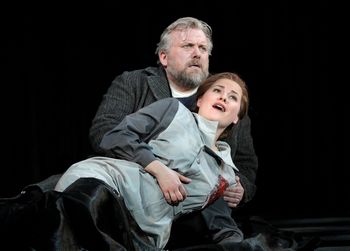 Music director Michael Christie, conducting the Minnesota Opera Orchestra for the last time, draws out every soft tone and emphatic fanfare in the score, seamlessly gliding the orchestra from one section to the next, as if it is a musical tale fervently being told in one rapt sitting. The production has been cast with exceptional leads, and stage director August Regan maintains fluid motion on stage, with clarity that keeps the unfolding story at center stage. These are reasons to rush to this Rigoletto, in spite of the fact that the tale it so beautifully tells is a great odds with the currents of this day. In 1850 Verdi chose an 1832 play by Victor Hugo, Le Roi s'amuse ("The King Amuses Himself") as the basis of an opera. Though well received at its opening, the play was shut down by censors for its depiction of a planned assassination of a king, and the characterization of that king as a self-indulgent, hedonistic womanizer. It was suspected that Hugo meant to skewer newly installed (through devious means) French King Louis Phillippe. In 1850 regicide was still an unacceptable storyline. Verdi got past the censors by demoting the sybaritic royal to a duke. Rigoletto premiered in 1851 and was an immediate triumph. In 2018, it is not the plot to murder the Duke of Mantua that is likely to rile up audience members, but his abominable behavior, without any consequence. He uses his positional power and glib tongue to lure any woman he choosesmarried or unmarriedfor his sexual pleasure. What feels most out of step with the current era is not the horrid behavior of a powerful man toward womenthat continues to our day, and in fact this past year has frequently made headlines. It is that once the Duke has had his lustful way with a woman, the focus turns to the dishonor placed upon her husband or father, never showing us the harm done to the woman herself, as if the rape of a daughter is more a crime against her father than against the girl herself. In the opening party scene alone, the Duke forces himself on Countess Ceprano, is confronted by Count Monterone for seducing his daughter, and talks openly of lusting after a young lady he has spied at church. Count Ceprano is openly jeered by the Duke and the rest of the court for protesting the Duke's affair with his wife, and Count Monterone is imprisoned for challenging the Duke's right to bed whoever he wishes. As for the young lady at church, she is at the core of Rigoletto's story. Rigoletto, the Duke's jester, is embittered by a deformed leg and a loveless life. He exorcises his hostility by verbally assaulting those in the Duke's court. As a jester, he is far more cruel than funny. Count Monterone is sentenced to death for continuing to protest the Duke's ravishment of his daughter. The Duke and Rigoletto further insult the Count, making sport of his claims of lost honor. Before being taken to the gallows, Count Monterone hails a curse upon the heads of both the Duke and Rigoletto. The Duke laughs this off, but Rigoletto is strangely shaken. It is a curse from a father in defense of his child, and Rigoletto too is a father. Gilda, Rigoletto's virtuous daughter, is the only good thing about his life. He tries desperately to shield her from the world, allowing her out only to attend church. At church she is spotted by the Duke (in the guise of a poor student) who fixes his sites on her. She is also drawn to his handsome looks. He finds his way to her and they declare eternal lovethough we only believe one of them. When Rigoletto learns of this, he is incensed. His cruelty toward those cuckolded by the Duke, his disregard for Count Monterone's anguish, and the Count's curse return to haunt him. Rigoletto's frantic efforts to restore Gilda's honor and overcome the curse take him down a dark and sorrowful path. Olafur Sigurdarson, making his Minnesota Opera debut, is glorious as Rigoletto. His full baritone fills the house at the Ordway with smooth, aching tones in his solos, and he harmonizes beautifully in the opera's duets, trios and quartets. Not only is his voice perfectly attuned to the role, but he imbues Rigoletto's character with the emotions of a man haunted, first by his disability, and then, belatedly, by the tragic consequence of his own behavior. Marie Eve Munger sings beautifully as Gilda, her soprano lilting in her earlier, innocent moments, and acquiring a burnished warmth as her innocence is by stages dissolved. As Gilda loses everything she has in the name of love, Munger portrays this loss as a willful choice, retaining her character's dignity and strength. Joshua Dennis has a rolling tenor that suits his role as the amoral Duke. Dennis depicts the smug, despicable heart of this man, justifying his own debauchery by singing about the fickle ways of women (the popular "La Donna e' Mobile") as if convinced that it is the women he uses and discards, and not he who lack constancy. Matt Boehler is suitably sinister in tone and demeanor, his deep bass underscoring the murderer-for-hire, Sparafucile. Nadia Fayad is alluring as Maddalena, a temptress meant to entrap the Duke who instead succumbs to his charm, her contra-alto persuasively marking her change of heart. Kenneth Kellogg sings the role of Count Monterone with moral authority, his strong baritone delivering a curse that hangs thick in the air. Victoria Vargas uses her vibrant mezzo-soprano range well as Gilda's too-easily compromised chaperone. The performers in other small roles, and the male chorus, comprising courtiers in the Duke's court in hopes of winning his mercurial favor, all sound marvelous. Valérie Thérêse Bart has designed costumes that give this Rigoletto a contemporary feel, with toucheslong cloaks, flashing capes, neon-lit masksthat temper it with a surreal quality. Julia Noulin-Mérat's set design places huge photos of the Duke, looking smug, defying any one to challenge him, as backdrops to the court scenes, images that bring our nation's current leade
