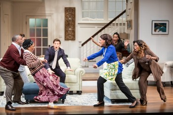The spin is that this is the elegant home of Marvelous and Donald, immigrants from Zimbabwe who left their homeland at the time the civil war that created black-African ruled Zimbabwe from white-ruled Rhodesia. Marvelous is a Ph.D. bio-chemist working on DNA research and Donald is an attorney. Settling in, of all places, Minneapolis, they would seem to have attained the American dream. In this beautiful home they raised two lovely daughters: the older, Tendi, is an attorney like her dad. The younger, Nyasha, is a singer-songwriter and feng shui consultant, though prospering at neither. The play takes place on the day Nyasha has returned from a life-changing trip to her parents' homeland and Tendi is about to marry Chris, an upstanding white man from Minnetonka, who heads up a non-profit that works on human right issues in Africa. Joining them are Marvelous' sister Margaret, the youngest who is also a Ph.D. but flounders with adjunct teaching positions while making a living from direct-sales gambits, and oldest sister Anne, a retired nurse who remained all her life in Zimbabwe. This is a wonderful set-up for a domestic playdrama or comedy, either way would work. Lives are upended by a major life event and by eye-opening travel. Gurira, who was born in Grinnell, Iowa but raised in Zimbabwe before returning to the U.S. to attend Macalaster College in St. Paul, uses that premise as a foundation to dig more deeply, examining the intersection of what is familiar and unfamiliar to us, where our cultural inheritance and familial history may be at great odds with the present reality of our lives. The schism in this family's soul is triggered by Anne's arrival. She holds fierce allegiance to the old customs and has been asked by Tendi and Chris to conduct a "roora," the ancient bride-price ceremony, in which Chris must offer a generous gift in exchange for Tendi's hand. Back home this would be a cow, but Anne consents to adjustments. Also needed is a "munyai," a go-between to work out the bride price, as Chris is forbidden to speak directly to Tendi's family on the matter. Put on the spot, Chris suggests his younger brother Brad, who is just out of the military and "a little brash" but will have to do. In the play's early scenes, Gurira unspools the comic potential of the situation, finding humor in the conflicts among family members, their enthusiasm for televised sports, and Chris and Brad's inept but earnest attempts to carry out their part of the roora. While the laughs are plentiful, she does not shy away from the real questions of identity, community and self-worth that emerge. In the second act, those conflicts and questions erupt, subduing the humor, and there are challenging reckonings to be made. Never is there a question of whether these family members love one another. The question becomes what else is needed for them to persevere, to maintain their individual and collective identity. Gurira writes dialogue impeccably, capturing the way people speak in different situations. She has constructed each of Familiar's two acts as continuous scenes played in real time, capturing the depths and heights of the human condition without a false note. On occasion, Gurira's four elder charactersMarvelous, Margaret, Anne and Donaldspeak in their native Shona tongue, sometimes mixing English and Shona words in the same line. No to worry, it is always evident by context what they are expressing. This mixing of language is common among those whose lives are between cultures, and adds heat and realism to their conversations. It is masterful writing, brought to stirring life by Taibi Magar's forthright and propulsive direction. Magar ensures that each character is given their due, the light within each is brought forth to illuminate the story. Every actor on stage is superb. Perri Gaffney as Marvelous conveys her steely shell and inner vulnerability. She captures the immigrant whose painful memories have forced her to cut all cords to her homeland, putting all of her energy into success on American termsthe sudden change of voice she affects when on the phone with Chris' mother is classic. As Donald, Harvy Blanks excels as the dutiful husband standing by his wife's ambition, pumped up over the game on TV, yet concealing a drive to recapture something lost. Wandachristine is a joy as Anne. She brings out the inherent humor in the role while never diminishing respect for this strong, uncompromising woman. Austene Van conveys grace as Margaret, managing the reality that she has not had the success in America to which she aspired. Sha Cage's Tendi is a searing portrait of a bright, confident young woman brought face to face with harsh truths. There is a sweet chemistry between Cage's Tendi and Chris, as played by Quinn Franzen, that instills confidence in their marriage in spite of the cultural and familial baggage. Franzen is every bit the earnest non-profit leader, smart but unassuming, with the ability to blush adorably on cue. As Brad, Michael Wieser is aptly clueless, with some of the funniest lines, but when, in a tense moment, he cuts through the emotional minefield, Wieser shows us Brad surprising himself by his capacity to deliver just what is needed. With the cast speaking with varying degrees of accents, and at times in Shona, hats off to vocal coaches Lucinda Holshue and Kecha Nickson, and University of Minnesota Doctoral candidate Nicholas Nychega's instruction on spoken Shona for bringing forth authentic voices to make the play not only speak, but sing. There are also wonderful moments when the family, even Marvelous, breaks out in spontaneous displays of their African roots through dance and ululation, and early on and again at the end of Familiar, Nyasha plays an mbira she acquired in Zimbabwe, delighting in having carried a piece of her ancestral land back to Minnesota. The play's title comes from a song she wrote for the mbira, calling for a return of things that are "familiar." Familiar is 