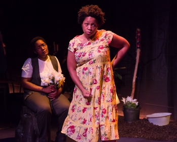 The performance offers a fascinating mixture of African and African-American musical and storytelling traditions. With its impressionistic poetic language and its water imagery, the piece evokes a phrase from Derek Walcott's poem, "The Prodigal: 10": making "a tangled music out of silence." The work developed from a "Bake-Off," in which writers are given set "ingredients" for a play, and a very limited time (in this case, 48 hours) to write. Bridgforth's ingredients included ducks, mermaids and gangsters. Many revisions later, the product is, according to the play's website, "a performance processional that celebrates multiple ways of embodying gender." Dramaturg Alexis Pauline Gumbs calls it a work about "infinite love and a great big healing that includes your child self, your old people, and the ancestral light you are steadily becoming." The performance includes the audience from the beginningin a sense, before the beginning). In the theater lobby, those attending are encouraged to write a note of love to their ancestors. Performers then come through the lobby singing jazz a cappella in a ritualistic "procession." At the performance, the seating is surrounding the actors; the spectators have a sense of sitting around a fire, hearing the community's foundation stories. The performance presents a collection of distinct voices, fascinating characters who reappear, employing a mixture of musical and narrative genres: allegory folktale and epic. The program describes the style as "the Theatrical Jazz tradition." Christopher Heilman has created a set on which thick, long ribbons of green, blue and purple hang from the ceiling, combining with pink and yellow lights to create an underwater, oceanic feel. One comes away from Dat Mermaid Man Lady feeling comforted and at least a little sea-changed. However, the sea in this work is not always a space of healing; it holds dangers and painful memories. At turns, different characters are seized by a dream of falling to the bottom of the sea where they encounter "Dat Black Mermaid Man Lady"a horrific gothic entity embodying the terror of history and the pain of loss. There they see "all the people who got killed. They down there." Those dragged down are frightened, changed but ultimately healed by the vision. The energy and intimacy that director Ebony Noelle Golden creates is transporting. It is as though the players have invited you into their garden to listen while they tell stories of ghosts and unforgotten dreams and remembered nights and old friends. Old desires commingle with curses and exorcisms and healing ancestral chants; there are tales of old alienations and divisions and reunifications. The circular narratives of cycles, evoking centuries of love and anger, life and death and life again, give the play an epic feel. The actors, Aimee K. Bryant, Florinda Bryant, PaviElle French, and Kenyai O'Neal, play a variety of roles. Collectively they give the most astoundingly intimate and open and engaging and inviting performances I have seen in years. The play combines chanting, communal prayers, ritualistic movement, and gorgeously layered vocal compositions by Mankwe Ndosi, combining musical traditions ranging from traditional African music to gospel to jazz to hip hop. All the voices are lovely, but French's is particularly creamy and full-bodied and, at times, achingly beautiful. Near the beginning of the performance, she stands near the back of the house, chanting: "You are not alone. You are loved," in a call-and-response to the performer on stage. The back and forth rhythm creates a sense of enchantment that persists through the duration of the play. French sings about loving and being loved by her ancestors, and you get the sense at moments that they are singing through her. The most artful and stirring performance is that of Aimee Bryant. She tilts her neck and her shoulders forward as if weighed down by the ages. She manages to be funny and tragic at the same time. Bryant has a spellbinding vulnerability and openness, reminiscent of Giulietta Masina in Fellini's classic films. Bryant is a master at embodying feelings and ideas. All the elements combine and re-combine in a way that feels organic and startlingly theatrical. This is an enchanting and healing work which should not be missed. Dat Black Mermaid Man Lady / The Show, through June 24, 2018, at Pillsbury House Theatre, 3501 Chicago Ave, Minneapolis MN. For information and tickets, visit pillsburyhouseandtheatre.org. By Sharon Bridgforth |