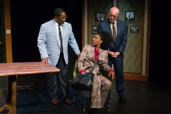 It turns out that transforming a great idea into a greator even goodplay is not so easy. Things start well, as Ham's transforms The Thin Man's Nick and Nora Charles into Thelma and Vernon Higgins. Casting Austene Van and Harry Waters Jr. as the sleuthing spouses was a great place to start. Both actors convey the requisite poise, confidence, style, and easygoing chemistry. The plot begins when a white woman, June Franklin (Olivia Wilusz), visits the Higgins' Watts-based office while Thelma is on duty. June is desperately seeking Thelma's husband Vernononly she calls him Earl. This would seem like a case of mistaken identity, but June produces a photo that shows her and Earl together, looking chummy. This gets Thelma's attention. Suddenly there are gun shots and June reveals that someone is out to kill her, and Earl (or is it Vernon?) too. June turns out to be the daughter of real estate mogul Sidney Franklin (Stephen Yoakam), who is making a killing building housing in Compton and rebuilding destroyed parcels in Watts, taking advantage of the restrictions (legal and not) that limit black families to just a few L.A. neighborhoods. June has been hiding from her father, who wants back an all-important document that she has spirited away. Two acts later, after there has been murder, double-crosses, and first rate sleuthing, the case is closed, with the possibility of justice waiting in the wings. Along the way, Thelma and Myron's poker-playing pal Mac (Theo Langason), who happens to be an L.A. cop, gets lassoed into the case; Sid summons his best boy, Chester Williams (Brian A. Grandison), a black man getting rich selling overpriced homes to eager-to-buy black families; and Hazel Tyler (Aimee K. Bryant), whose nephew was killed by a bullet meant for June, directs her sultry charms toward Vernon before revealing her true loyalties. The plot is a bit strained, but the pieces of the puzzle do finally fitmore or less. Still, the resolution hardly feels worth the circuitous route taken to get there. My suspicion is that the insertion of topical issues related to 1960s housing discrimination and exploitationissues whose tails continue to weigh upon communities of color todayare meant to lift the facile narrative to a higher level of importance. Thelma cites the 1948 court ruling voiding the use of covenants to keep people of color from moving into certain neighborhoods, such as Sugar Hill, where Thelma and Vernon reside. The practice of block-busting that turned white neighborhoods into black neighborhoods and triggered the phenomena of white flight is explicitly described. References to the riots in Watts are meant to signify the arrival of a turning point in the fight for civil rights, as when Thelma asserts to Sid, it was not a riot, but an uprising. The history here is compelling, but it feels tagged on to make West of Central something more important than a whodunnit with laugh lines. When explanations are given, such as the description of block-busting, the plays feels put on pause to make sure the audience is well schooled before proceeding, while at other times, nuggets of history are set out like enhancements to the set décor, contributing ambience but not meaning to the play. For example, reference to the bisection of Sugar Hill by construction of the Santa Monica Freeway mirrors the destruction of St. Paul's historically black Rondo neighborhood by Interstate 94. Yes, we get it, the play is set in L.A. but the issues have a greater reachbut this factoid does nothing to move the plot ahead. Director Hayley Finn does smooth work of moving through the mystery story, leaving out the dots for the audience to dutifully connect along with the detectives, and maintaining a smoky noir atmosphere. The difficulty with blending in the shards of history and sociology are more a factor of the play than its staging. Then too, the writing strains for humor, seeking laughs too often by sexualizing the phrases "private dick," "black dick," and "female dick." Van succeeds in making Thelma an appealing character, who is smart, brazen, and full of confidence, as shown by the nonchalant manner with which she rebuffs Sid, who assumes she has appeared in his office as the cleaning woman and orders her to wash the windows by telling him "this suit is from Bonwit Teller, and Bonwit Teller don't do glass." Waters, as Vernon, is a fine match for Van. He is handsome and sharp-witted, exercising a suave manner to gain entrée to closed doors, and off-handedly deflecting suspicions about his unaccounted life before hooking up with Thelma. Yoakam's Sid is the epitome of corporate swine. His face is frozen into a gloating smirk, a glad-hander who is merely giving the people what they want, until someone gets under his skin and his smirk dissolves into a menacing sneer. Wilusz impresses as overwrought June, and Bryant handles ably the plot's call for her to pivot from an alcohol-primed seductress to practical problem solver. Grandison excels as the kind of man who sees only what serves his rise, oblivious to the inevitable downfall. Langason's Mac seems to lack resolve, less cocky than one might expect of a member of the LAPD. The script does him no favors by making him the one cop who happens to be buddies with Vern and Thelma, and happens to be on the scene whenever a police officer is needed. Is the LAPD force really that understaffed? Joel Sass' set design cleverly transforms between the five different locales called for within the confines of Pillsbury House's small stage, with attention to details such as framed photos on the wall in high-rolling Sid's office with his arm around Elvis and Marilyn Monroe. Sound designer Katherine Horowitz has collated a witty collection of detective themes from past films and television shows for transitions and underscoring. Amber Brown's costumes serve the characters and period welland Thelma's suit does have a Bonwit Teller look to it. West of CentralCentral Avenue being the div