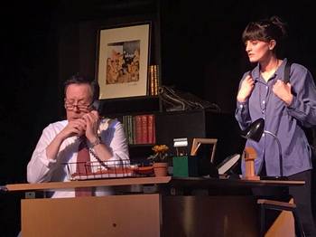 At first, Johndistracted by phone calls about a pending home purchasesubscribes to Carol's dismal prognosis, disingenuously telling her "you're an incredibly bright girl," before pointing out that her essay is drivel. Then, on some speck of awareness, John pivots: he will help her! He will give her private tutorials and instead of an F, promises her an A. He tells her that none of it matters: the rules of higher education are arbitrary and meaningless, no more than a form of hazing. When Carol, startled by his thesis, asks him why, if higher education is so bad, he teaches, he responds with no hint of irony "because I love it." While all of this is being said in David Mamet's bracing Oleanna, much more than words is being exchanged. Gestures, changes in tone, small actions, and offhand remarks that seem unrelated prove very much to be part of the power dynamics between John and Carol. She returns in act two, having seized a large degree of John's power from him. Unable to believe this could happen, John struggles to regain his control and in the process, digs a deeper hole for himself. By the end, Carol has amassed a power that cannot be denied. The more John fights back, the more he proves her case. Oleanna has been given a galvanizing mounting by The Matchbox Theater, a small but formidable young company led by Douglas Stewart, who directs this production. Mamet's play appeared in 1992, just after the Anita Hill - Clarence Thomas hearings for Thomas's confirmation as a Supreme Court Justice. Hill famously accused Thomas of sexual harassment in their workplace. Though Mamet had already written the play before those hearings, its timing gave it the bearing of an urgent town crier call, sounding an alarm regarding the murky waters that separate civil behavior from harassment and abuse. It raised challenging questions as to whose perception of the same narrative is correct and what consequence should befall on one found guilty. New York Times critic Frank Rich wrote "Oleanna is likely to provoke more arguments than any play this year." The Matchbox Theater, likewise, announced its production before the recent debacle concerning the confirmation of Brett Kavanaugh to that same court, and again, its timing bestows Oleanna with a surge of consequence. Oleanna is known for leaving audience members at odds over what they saw: who was in the right? In 2018, 26 years of harassment policies, personnel training, and talk show discussions later, and a year after #metoo broke new waves of outrage, does the landscape on which we view sexual harassment and violence look any different? Are our judgments more enlightened and more even keeled, or has entrenched partisanship further distorted our vision? Stewart directs the storm that builds between John and Carol from isolated lightning boltsJohn's agitation focused on his real estate deal, Carol on self-deprecating wallowinto a tempest of engagement, as Carol growing storm force batters down on John's receding shore. His sure-footed handling of this volatile material builds incrementally to its appalling climax, with the audience perched on the edge of their seats. Stewart and assistant director Marc Christian Berg have designed a well-realized set that looks every bit a college faculty office, with books and binders crammed on the shelves, fitted upon the tiny stage at Matchbox to increase the intensity of the duel that plays out within. Both actors give riveting performances in which the characters circle one another in orbits ordained by their gender, their positions, and the tools at their disposal. They make certain neither character is likeable, yet they keep us enthralled. Lucchino evolves from fawning to ferocious, portraying Carol's growing strength and convictions through bolstered posture and articulation. Even the timbre of her voice grows in force. With the emboldened manner in which she refers to "my group," an unidentified support system that is backing Carol, Lucchino conveys not only strength but emergent leadership in this once self-effacing woman. When, heady with the intoxication of power, Carol overplays her hand, Lucchino illustrates the thin line between avenger and abuser with cold assurance. Somers appeared as Finbar in Matchbox Theater's chilling production of The Weirlast year, and both characters share the quality of a self-satisfied man whose sense of achievement exceeds their reality. However, as John, he sees that reality crumble before his eyes. Somers conveys John's easy acceptance of the power his position grants him, as he tosses out GRE vocabulary words with smarmy arrogance and turns Carol's troubles into a testimony on his own rise to successtotally oblivious to how his attempts to be supportive demean her. When his comfortable life is threatened, Somers keenly depicts the growing alarm and panic, descending into dark waters in which all he can do is flail against the downward pull. Early in Oleanna, while Carol is waiting for John to wrap up the phone call about his pending home purchase, she hears him use the phrase "a term of art." The first thing she asks when the call is concluded is "What is a term of art?" John explains, it is a word or phrase that may have a broad meaning in common usage, but a legally specific meaning in a particular context. It seems, then, that Mamet fills the play with examples. John blithely says everything Carol later accuses him of sayingshe has invented nothingbut these same words are given specific meaning to make a case against him. One may judge that John's adversary is the carelessness of his own words and actions as much as it is Carol. Is John assailed by Carol or his own dismissal of standards? Mamet leaves us to discussand arguequestions from 1992 that largely remain unresolved in 2018. The Matchbox Theater gives us a blistering opportunity to continue these essential arguments. Oleanna, through November 4, 2018, at The Matchbox Theater, 5415 ½ Nicollet Avenue South, Minneapo