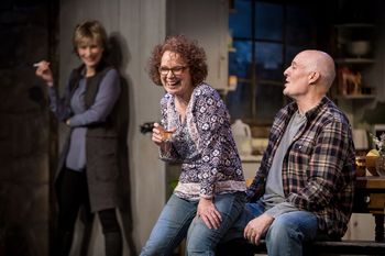 First produced in Kirkwood's native England by the Royal Court Theater in 2016, Jungle Theater has mounted the first U.S. regional production of The Children following its Broadway run (earning a Tony Award nomination for Best Play) last season. Kirkwood was inspired by the 2011 nuclear power plant meltdown in Fukushima, Japan. She changed the location to England, but with the same basic premise: an exceedingly rare collision of geologic fault linesa once in ten million years event, a character stateshas triggered a tidal wave that destroyed a seaside nuclear power plant, releasing radiation from the reactor core into the surrounding water and land, causing death to people, animals and plants. Hazel (Linda Kelsey) and Robin (Stephen Yoakam), a long-married pair of nuclear scientists, have spent their entire careers at the plant and lived nearby. After retiring, they purchased a plot of land for a hobby-farm just beside the "exclusion zone" surrounding the plant that has been indefinitely evacuated. They since moved away, but not too far, living a spare life. Their rationed electricity comes on briefly at 10:00 p.m., their running water is unfit to drink, their plumbing unreliable, and their food requires testing for radiation. Hazel seems to be taking the adjustment more in stride than Robin, who is unable to keep from revisiting their radioactive farm site, and seeks comfort in drinking the wine he distills from locally gathered plants. Hazel believes in doing what she can to keep herself healthy, in spite of everything, by such means as taking up yoga and eating healthy meals. At 67, she feels nowhere near the end of her life. Further, she has four children and four grandchildren to consider. Hazel and Robin's patterned lives are disrupted by a surprise visit from Rose (Laila Robins), a fellow scientist during their days at the plant, who left for America twenty-eight years ago. Hazel reveals that she'd heard rumors Rose had died, and it is not so clear that she is in fact thrilled by the sight of her long-gone friend. Certainly, the two women have very different natures: Hazel is practical, forthright, and witty in a bookish way, with a hint of self-righteousness, while Rose is droll, guarded and self-deprecating. Hazel prattles on with nervous chatter until Robin returns from his daily walk to the farm. When he does arrive, it is with a burst of ebullient energy, as if he were a schoolboy just set free for a holiday break. What areor werethese three to each other? One moment it seems they must have been intensely close, the next that they were merely amiable colleagues. There is a mystery around Rose's reappearance after all these years, in the wake of the devastation of the one thing they surely had in common. All is revealed in the course of the 105 minutes (with no intermission) that the play runs, set in real time. Along the way, the three bring up their varied ways of responding to the specter of aging, to the assault of disease upon the body, to the fading away of their productive years for lives focused on self-care and modest satisfactions. When Rose at last reveals the reason for her return, their earlier concerns are torn asunder, as if a second nuclear meltdown threatens to immolate their lives. Everything plays out in the main roomkitchen, dining and living room combinedof the cozily rustic house Hazel and Robin now occupy, a set beautifully designed with thoughtful detail by Chelsea M. Warren. Director Casey Stangl takes the playwright's well-worn trope of a couple whose ordered life is turned upside down by the unexpected arrival of someone from their past, and works with the skillfully crafted text to make it fresh and urgent. She raises an alert that something new, something we have not seen before, is afoot, as our planet faces challenges it has not seen before. Stangl has assembled a dream cast in Linda Kelsey, Laila Robins, and Stephen Yoakam. Kelsey is perfection as Hazel, staunchly resolved to make the best of things as they have turned out, maternal but not sentimental, organized to a pinpoint. She is splendid slamming down the salad she has just put together in front of Rose while sputtering bottled up grievances toward her guest. Laila Robins is equally striking as Rose, showing the great effort it takes to maintain an air of sophistication, sharing tidbits about failed relationships and therapy. The difference between these two women is underscored by Mathew J. Lefebvre's spot-on costumes, Hazel in salt-of-the-earth jeans, a peasant-style blouse, and long hair pulled nonchalantly back, while Rose sports stylish apparel in black and grey, with a chic short haircut. Stephen Yoakam portrays Robin with bawdy humor, juvenile playfulness, and deep sadness. He can be a great clown, as in his splendid slow burn while Hazel irritates him with the wheezy winding of a radio, but when he describes to Rose the reason he keeps going to the farm, he releases the depth of heartbreak he has lived with, and the effort he has made to shelter Hazel from his despair. While all of this may sound like terribly heavy goingand The Children is unquestionably a serious playit is laced throughout with humor, the type that enables us to endure through the ravages of life. When all three join in an awkward, funky dance they enjoyed together thirty years before, they seem on the brink of retreat back to a time when they were unburdened by personal disappointment and global disaster. There are some flaws in Kirkwood's play. For example, after Hazel's reflex response to Rose that her children are all well, including Lauren, the oldest who was born before Rose moved away, there is a revelation that all is not so well, but this never loops back to the themes at the heart of the play. The flaws are minor, however, compared to the full circle Kirkwood draws from the play's mildly mysterious opening to its breathtaking, fully informed denouement, in which each character fully embraces their hones