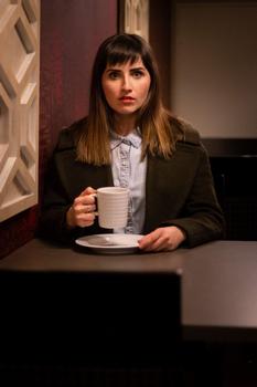 In Sarah Ruhl's comic play Dead Man's Cell Phone, currently being presented at Lyric Arts Main Street Stage, a hapless woman named Jean sits alone trying to write in a coffee shop when one of those abominations occurs: a cell phone rings at the next table, ringing on and on without being answered. When this happens again, Jean addresses the gentleman at that table and asks him to answer his phone or turn it off. Finally, in frustration, Jean struts over there and answers the phone. It is only after she has taken a message for the gent that she realizes that the guy, who is named Gordon, is dead. Another call comes in, from a salesperson whom Jean puts off. Yet another callGordon's mother. At this juncture, Jean realizes that she has a burning responsibility to do something about the dead man. This is when we discover that Ruhl has inserted elements of absurdity into the play, as we observe a coffee shop with only these two customers, and no one elsenot even a barista in sight. It is up to Jean and Jean alone to take responsibility. She calls 911, but keeps Gordon's phone, and through it enters a total stranger's world. She attends his unorthodox funeral; meets with his mistress (a European accented femme fatale), who insists on knowing Gordon's last words; and gets invited to dinner with Gordon's overbearing mother, indifferent widow Hermia, and hapless brother Dwight. Because she was with Gordon when he died, they all surmise she knew him well. With the best of intentionsat least, it seems that wayshe invents his tender last words, gifts of farewell, and intentions to mend lingering rifts. The Gordon that Jean invents is a far better person than the one six feet under, and she works hard to maintain her illusion, as if somehow by being merely present when he died, she is responsible for his legacy. However, things take a darker turn when she is drawn into his nefarious business affairs. In talking about her play, Sarah Ruhl has stated her intent to depict ways in which these devices that are meant to foster communication actually induce isolation among people, allowing people to avoid reaching out to strangers because they have an ever-present link to those they already know. It is true that we rarely see people strike up conversations with strangers in public places, instead being in the thrall of their phones. On the other hand, those phones are likely to be tracking messages from strangers, by way of tweets, Facebook posts, mass emails, and other platforms, rather than someone the user actually knows. It seems that what has occurred is not so much choosing those we already know over connecting with strangers, but connecting with strangers from a safe distance rather than reaching out to those at the next table, sitting beside us on a bus, or beside us in line at the post office. In Dead Man's Cell Phone, Jean does reach out to strangers unleashed through the phone, but in doing so, distorts them into a romantic fantasy. There is no indication that Jean has any life of her own. She does mention her job at the Holocaust Museumand certainly, exposed day after day to the artifacts of that trauma, one can be forgiven for indulging in escapist fantasybut, in another absurdist leap, she has all the time and money in the world to pursue her cell-phone induced dream. It is only after she comes to the shocking realization that she has been totally deluded that she is able to reach out for something real, something not based on wishful thinking and naïve optimism. If Ruhl's play gets off track as a treatise on the specter of humanity's growing isolation, it would be redeemed by a vein of humor in the unspooling of her absurd, and at times grisly, yarn. Unfortunately, the humor is spotty. There are some pretty good segments where the situation and the characters meld drawn-out comic elements, but also long stretches that attest to the playwright's abundant imagination but do not stir much response, neither of humor nor compassion. Among the most arresting moments are Gordon's lover's demonstration of how a woman should magnify her air of glamour by the way she applies lipstick in public, and a long monologue that opens the second act in which Gordon, speaking from the grave, details his unsavory line of work, his disdain for the people in his life, and how he came to be sitting across from Jean on that fateful day. An attempt by Gordon's mother to sing along with a hymn during his funeral is outright hilarious. In each case it is hard to separate the adept performances (Briana Bolden as the Other Woman, Nick Menzhuber as Gordon, and Jane Burke as Mrs. Gottlieb) from the text. As Hermia, Kate Beahan delivers a confession of her behaviors during sex with her late husband that is presented to chilling effect, albeit lacking in humor. Phillip Hoelscher unleashes the play's one moment of true heart as the underachieving brother Dwight, a sad sack waiting for happiness to strike. Katie Strom Rozanas gives a winning performance in the central role of Jean, a blank-slate every-person, who seems almost desperate to draw some color and definition to herself though her intrepid entry into the world of Gordon Gottlieb. She does convey a kind of transformation that occurs by way of her sojourn through Gordon's world, both in this and the next life, and enables us to believe Jean's final resolution, a transformation that is barely earned by the text, but which we believe thanks to Rozanas' efforts. Director Scott Ford keeps all of the scenes moving briskly, and wisely treats the absurdities in the narrative as reasonable scenes from everyday life, so that while we see the flights from reality taking place, the characters behave at all times as if everything is completely normal. The design and tech credits are all up to Lyric Arts' high standard, with Jim Eischen's projections seamlessly guiding us from scene to scene. Dead Man's Cell Phone came to life between two of Ruhl's signature works, The Clean House 