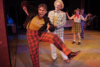 Blitzstein's musical has been compared to the work of his contemporaries Bertolt Brecht and Kurt Weil. Indeed, Blitzstein's greatest success was his translation of Brecht and Weil's The Threepenny Opera for an acclaimed production that opened at New York's Theatre de Lys in 1954 and stuck around till 1961 (that show had tanked on its first go in New York in the 1930s). The Cradle Will Rock is less arch, its characters not as outlandish as in Brecht and Weil's universe, stretching their arms a bit toward the standard issue Broadway musical, but those arms never do reach that far, nor would we want them to. If there is any resemblance to shows now on Broadway, it is to the hyper-jazzed up cynicism of Kander and Ebb's Chicago, a climate that also encircled their last two produced works, The Scottsboro Boys and The Visit. But The Cradle Will Rock is its own animal, a pageant of hard times made harder by the oppression of those with all the money, which equals all the powerthose we today call the 1%. In Steeltown, the unscrupulous Mr. Mister holds all the cards, while his wife Mrs. Mister stacks a deck of her own. He uses his clout, both legal and extra-legal, to keep all the civic establishments under his thumbthe newspaper (led by Editor Daily), the church (Reverend Salvation), the medical field (Dr. Specialist), the university (President Prexy), and even the arts (Dauber the painter and Yasha, a concert musician). Each has a scene with one or more songs depicting how any ethics they once held crumble before Mr. and Mrs. Mister's sway, and each has been asked to serve on Mr. Mister's ironically named Liberty Committeea status which keeps them securely in the tyrant's grasp. These vignettes are seen through the eyes of Moll, a prostitute who says "No" to the wrong guy, and Harry Druggist, a pharmacist whose downfall is the saddest tale of all. There are cops all about, a tubby crew who waddle when they walk, like a tin wind-up toy, but who swing hefty clubs. Last but not least is our hero, Larry Foreman, organizing the workers at Mr. Mister's factory, and reaching out to brothers and sisters across the spectrum of labor to unite and to put their collective feet down or else, he exclaims "the cradle will rock!". Thanks to Larry Foreman's courage and optimism, all the tawdry business we have seen before is washed over by a wave of hope. Here's where the story of a society subject to the whims of the wealthy few in the 1930s veers from today. At that time, union organizing was on the rise, culminating in powerful labor unions during the 1950s, '60s, and '70s, when "Look for the Union Label" became a favorite TV commercial jingle. Since then, in the wake of Ronald Reagan's union-busting policies and overseas outsourcing of what were once American jobs with union protections, union power is on the wane. Now we are not told to look for a union label, but a label that says "Made in the U.S.A," erasing a connection to the well-being of those whose sweat actually produced the hammer, jeans, or bowling ball. If it can thus be thought there is a hint of nostalgia about The Cradle Will Rock, it also provides a mirror that reflects upon our current state, presented in garish spectacle with bold makeup on the actors' facesscarlet cheeks, dark-shadowed eyesand wildly comic costuming by Kathy Kohl. Tony Stoeri's stark lighting sets the tone with opening scenes that cast the bright white light of a tabloid crime scene upon groups of characters striking poses. The play is near completely sung-through, with Blitzstein's score packed full of themes for these characters, drawing upon jazz, ragtime, hill country folk, and tin pan alley motifs. The music is constant, played with exquisite precision by Sonja Thompson on a jangly piano, with cast members now and then providing accompaniment on assorted instruments. The score does not offer tunes one is likely to leave whistling, but it could not be more perfect for telling the story Blitzstein has laid out. The ensemble is magnificent. Kate Beahen, as Moll and JP Fitzgibbons as Harry Druggist are the shared heart of the piece, appalled by compromise and corruption all around them. Beahen is heartbreaking singing about the euphoria of "A Nickel Under Your Foot," Fitzgibbons digs from deep within in describing the calamity that took away everything Harry cherished in life. The heroic Larry Foreman is played by Carl Schoenborn with full-hearted conviction. Looking back at the arc the efforts that he and his ilk took to improve the lot of our people, and where things now seem to be heading, lends a poignancy to his performance that might not have been present when Cradle bowed in 1937. The villains of Steeltown, Mr. and Mrs. Mister, are played with heinous gusto by JC Cutler and Molly Sue McDonald, maintaining the decorum of those powerful enough to employ others do their rough business for them. McDonald repeats the role she played in Frank Theatre's 2003 production of The Cradle Will Rock. I missed it that time around, but it's impossible to imagine how she could have been any better then than now. Maria Asp draws all eyes, ears and hearts to her as Ella Hammer, singing "Joe Worker" for her brother who died from being overworked and not, as Mr. Mister wants Dr. Specialist to attest, from his own drunken misconduct. Sasha Andreev is shockingly out of control as Mr. Mister's son Junior Mister, an imbecile born to privilege, when, along with Sister Mister (Chelsie Newhard), Mr. Mister, and Editor Daily (Bob Beverage), he considers the earthy pleasures of being sent to work in "Hawaii." Joe Nathan Thomas imbues Reverend Salvation with a hefty mantle of hypocrisy, tailoring his sermons to which way the winds (and dollar signs) blow, while Scotty Reynolds as Yasha, and Hector Chavarria as Dauber delightfully detail the profits to be had in "Arts for Art's Sake." I would be remiss not to mention the legendary circumstances of The Cradle Will Rock's premiere in 1937. The show