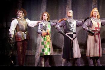 Spamalot is loosely based on the 1975 movie Monty Python and the Holy Grail by the legendary Monty Python comedy troupe, which amassed a large following for its British TV series "Monty Python's Flying Circus" that ran from 1969-1974 and lived on through recordings, reunion specials, and movies. Monty Python and the Holy Grail skewered the Arthurian legends, roasting virtuous heroes of English lore, such as King Arthur, Sir Lancelot and Sir Galahad, creating a salad bowl of anachronisms that make fun of past and present in equal measure, sprinkling it liberally with music hall bawdiness. Spamalot follows the movie's basic plot as King Arthur scours his plague-infested kingdom for knights sufficiently noble to join his search for the holy grail. Along the way, the knights encounter a host of obstacles and villains, such as French Taunters, the Knights Who Say Ni, the Black Knight, and a killer rabbit. While Arthur is virtuous to the point of being bland, his knights each have their own quirks which become the butt of much of the humor: Sir Robin's cowardice; Sir Galahad's vanity; and Sir Lancelot's forthright manliness, which is undone when the damsel in distress he rescues turns out to be a prince. Adding spice to the brew is The Lady of the Lake, who first chose Arthur to receive the sword Excalibur and become king, and aids him from the sidelines in various ways. This Lady has the persona of a club-performing diva, and her entourage, her "Laker Girls," are pelvis-thrusting cheerleaders. While the Arthurian legends end on a melancholy note, there is never a doubt that this brash, bedazzling show is heading for a happy ending. And what about those intervening years since these wacky knights first strode the esplanades into Twin City theaters? Have the time's up/#metoo movements, legalization of same sex marriage, or concerns about resurgent anti-Semitism cast a pall over the irreverence of Eric Idle's (one of the original Monty Python members) book and lyrics? Not to this reviewer's sensibility. While I totally support the aforementioned campaigns, nothing in Spamalot is mean-spirited or degrading, and any good cause is, in my book, strengthened by being able to have a sense of humor about itself. For example, the crowd-pleasing production number "You Won't Succeed on Broadway (if you don't have any Jews)" does not ridicule or admonish the Jewish faith (of which I am a proud member), but celebrates the preponderance of Jewish creators, performers and motifs in the world of musical theatercomplete with a bottle dance straight out of Tevye's shtetl. As with everything in Spamalot, it's all in fun, it's all good, and it's all vastly entertaining. The score, with Idle's lyrics set to music by John Du Prez, comprise a collection of golden age Broadway melody types. None are memorable or particularly lovely, but all work exceedingly well in service to the show, and add to the fun every time a particular style is raffishly parodiedooh, there's a jazz-handed Fosse move, there a ladle full of Andrew Lloyd Webber excess. It's all delivered with winks and warmth. As directed by Sam Viverito, Spamalot is pure and simple, a comedy, and keeps moving quickly, so the chance to catch your breath between laughs is brief. Viverito also choreographed the show's many dance numbers, and while the choreography is not particularly distinguished, it does capture the attitude of parody and party. This current non-Equity tour has a strong cast to put the knights and ladies through their paces. Steve McCoy is splendidly regal as Arthur, a bit naïve about his ridiculous quest, but maintaining his honor throughout. More than in the earlier iteration of Spamalot, McCoy's Arthur feels like the glue holding the production together. He also has a strong, serviceable voice. Leslie Jackson is a wonderfully wish-fulfilling Lady of the Lake, kind and ethereal in character, self-indulgent when she steps out of character in the hilarious "Diva's Lament." Keeping with the times, Jackson's Lady is less akin to Liza Minnelli, as in the original, and closer to Beyoncé. Kasidy Devlin proves himself both a spry physical comedian and a talented song and dance man as Sir Robin. All of the remaining actorsmost playing multiple rolesand ensemble members perform with finesse, bringing the whole jolly enterprise to life. A note, though: I did sense that the ensemble is a bit reduced and my research shows that were twelve ensemble members in both the original Broadway cast and the original national tour, but this production employs only ten. No doubt a nod to rising costs, it reduces the razzle-dazzle effect of a heavily populated stage, but does not erode the entertainment quotient of the show itself. Still, I noticed it, so that says something. The orchestra consists of just five musicians, but with three of them being brass players, the other two keyboards, they produce ample, well-tuned sound, ably led by conductor Emily Croome. That leads me to Spamalot's witty overture. Sadly, few shows today have an overture. This one doesanother throwback to the old tropesbut it plays at a racing gallop, as if even its creators know we all want to get on to the good stuff. Original Broadway costume and set designer Tim Hatley had his work reproduced for this tour, with sets modified by James Kronzer. They work beautifully with this show, creating cartoon-like apparel that mines our visions of medieval living, and storybook settings that bring to mind the old fractured fairy tale cartoons. Humorous touches abound, such as when the Lady of the Lake rises from the water, her silky gown seems to be covered with lake algae, and Camelot's transition into a Vegas style showplace, dripping in glitz, all perfect illustrations to accompany Idle's comic-book plot. Mike Baldassari's lighting, Craig Cassidy's sound work, and Elaine McCarthy's projections complete the creation of this full-throttled musical comedy playground. I do worry about some who come to 