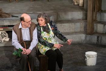 One spark of hope among them is a recent addition. Abe is an energetic 30-something, sure that a new coffee place among vacant storefronts means the district is on the verge of a renaissance. He recently discovered a submerged passion for his Jewish identity, bringing his new-found zest for his faith to the failing Etz Chaim congregation just in time to be elected its president and preside over their long-postponed decision whether or not to sell the building and lay their shul to rest. This fictional shul is not unlike scores of real houses of worship in inner cities around the country, as demographic and economic changes leave behind buildings held sacred by a small group too old and poor to maintain them. The set, well rendered by scenic designer Michael Hoover, gives hints of the sanctuary's former dignity obscured by decades of decay. Here the remaining members will vote on whether or not to sell their beloved shul. They cannot afford its upkeep, and in fact for some years have not had a rabbi to lead services, nor a Torah or other sacred objects, having sold them to pay expenses. But there are many memories here, and no other visible sign of the community in which they grew up and raised their own children. Among those gathered, each is a particular type: Miriam the caretaker, Nate the worry wart, Friedman the optimist and entertainer, and Ezra the somewhat demented sage. A stranger shows up, Paul Golden, all the way from Hilton Head, who has never been present, yet has a strong personal connection to Etz Chaim. Golden's dapper suit stands in marked contrast to the rumpled, threadbare clothing worn by the other men, and Miriam's somewhat dated, though still most proper, attire. His purpose at the meeting creates flashpoints with the others, allowing for dialogue that mixes philosophy, articles of faith, litanies of disappointing lives, and improbable hopes. Those hopes are brought even more into focus when a realtor, invited by Abe to talk to the group, shows up with a prospective buyer. What do these people in the waning years of life hope for? Well into act two, their thoughts continue to teeter-totter back and forth. Robert Dorfman, an actor with a long resume, including his magnificent turn at Minnesota Jewish Theatre Company in the one-man play Via Dolorosa, makes his directing debut with Shul. Dorfman creates an atmosphere of warmth and affection among the core characters, and allows for balance in their arguments for and against selling the old synagogue, drawing the audience in as interested parties in the outcome. A quintet of actors do fine work as the elder Etz Chaim congregants. As Miriam, Nancy Marvy captures the essence of a woman left alone by her life, who fills the void by assuming every unclaimed responsibility. Raye Birk's Nate cannot conceal a kind heart and deep affection for his friends beneath a scowling, cynical exterior. Paul Schoenack projects the life force within Friedman, working overtime to bring lightness into the encroaching dark. As enigmatic Ezra, Charles Numrich conveys a kind of lunacy that is the result of stewing over his deep thoughts until they simmer over. As Golden, the outsider trying to assert his role among the others, Nathaniel Fuller creates a brusque first impression, defenses well-guarded, who in spite of himself begins to understand what he has missed out on for all of his life. Avi Aharoni is extremely likeable as Abe, overflowing with cheerful energy borne of his reawakened Judaism, but his character is underwritten. We get no sense of his past, nor the kind of Jewish identity he imagines cultivating amid this diminishing group. It is hard to tell if Abe is a clear-eyed leader or a dewy-eyed dreamer, and the difference is crucial to the outcome of the play. Dexieng Yang is burdened with the role of Heidi, written as such a shrill and unpleasant character, without an ounce of kindness, that it is hard to imagine her having a very successful career as a realtor. As the would-be buyer John, Jôher Coleman fulfills his role as a plot device, surprising the membership of Etz Chaim first with his very appearance and with his unusual offer. Shul deals with real concerns and does a good job depicting the frailty of a community of elders whose primary support system is one another. It gives specific color and character to a dilemma being replayed in the urban core of large cities around the country. Wolf does all of these things well. However, in stretches, the play feels overly talky, the characters repeating their cases for selling or keeping the building a bit too often. He throws curves into the plot, which sometimes work nicely to ratchet up the discussion, such as the surprises upon the entrance of the realtor Heidi and of the interested buyer John. These folks have lived well into their golden years and seen a lot, but are still caught off guard by the way the world is changing. An impromptu entertainment relieves the mounting tension and demonstrates the strength and affection of the bonds among these people. At other times Wolf's plot twists feel forced, such as the manner in which the missing congregant, Ezra, winds up joining the meeting, as well as the resolution, when it finally comes, based on withheld information that could have been offered in the play's first twenty minutes, and that fails to really address the core issues facing this community. In spite of weaknesses in the unspooling of the narrative, Wolf has touched upon a nerve that will be felt deeply by many, including those facing the loss of community institutions that have nurtured them through their lives, and those either experiencing or observing the grasping by those growing old onto lifelines, be it a building that offers a gathering place, or friendships cultivated for over half a century that continue to give life meaning. One moving scene in particular takes place when an important sacred object, long believed to be long lost, resurfaces and is reinstalle