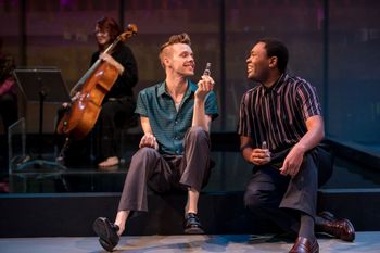 In Harrison David Rivers' new play, To Let Go and Fall, Arthur and Todd are reunited after a separation of twenty-six years. We see them as they are today, both fifty-one years old, having lived very different lives and in flashback scenes as sixteen-year-old student dancers who meet and fall in love during a summer dance intensive program with American Ballet Theatre in New York City, then again, six years later, as twenty-five-year-old company members whose careers have taken off, though to different heights, and whose relationship has reached full bloom. Rivers is among the most prolific young playwrights working today, with twelve produced full-length plays in less than a decade in theaters from New York to San Francisco. It is our good fortune that he is based in St. Paul, and that Theater Latté Da, where Rivers' musical Five Points had its world premiere last year, tapped him for this new work, playing at their home-base Ritz Theatre. His next premiering works will be The Bandaged Place at the New York Stage and Film Festival at Vassar College later this month, followed later this year by Just One, staged by Transport Group in New York City. All the scenes in To Let Go and Fall are set at the same spot: the Paul Milstein Pool and Terrace, on the grounds of New York City's Lincoln Center for the Performing Arts. We time travel between 1982, 1991 and 2017, with social and historical contexts greatly changing the world in which Arthur and Todd experience their love. Most profound for their lives, in 2017 the love between two men no longer needs to be lived in the shadows, but can be openly consecrated by marriage, while the scourge of AIDS over two decades decimated the ranks of gay men's communities, hitting the world of dance extremely hard, and continues to lurk like a stain that cannot be fully removed. All through this, the place where Arthur and Todd exchange love and regrets, promises and accusations, remains a crossroads of the arts, where music, opera, dance and theater come explosively alive and inspire one another. Similarly, Rivers brings together a bouquet of art forms to comprise the totality of To Let Go and Fall. Original music composed and played by two sublime cellists, Jaqueline Ultan and Michelle Kinney (who perform together with a pair of percussionists as the group Jelloslave), provides interludes between scenes and underscoring during parts of the play. Ultan and Kinney are each perched on a clear Lucite platform set in the large pool that occupies most of the stage, so the music itself seems to drift ethereally from the water. Arthur is a devotee of the work of choreographer Merce Cunningham and his artistic and life partner, composer John Cage, and quotes from the beautifully yearning love letters Cage wrote to Cunningham between 1943 and 1944, found after Cage's death in 2009, adding a literary element to River's play. Though Arthur and Todd are dancers, the actors do only small bits of dance during the play, but two accomplished ballet dancers (Conner Horak and Da'Rius Malone) engage in a tender pas de deux, with elegant choreography by Penelope Freeh, captured on video by Maxwell Collyard and projected on the rear of the Ritz's stage, alternating with views of the iconic Lincoln Center structures that surround the plaza. In this way the art of dance is brought fully into To Let Go and Fall, as well as the art of film, with odd camera angles and editing allowing us to see the dancers intersect in ways not visible to those who would simply watch them perform on stage. Three pairs of stellar actors take on the roles of Arthur and Todd at different life stages. We first meet them in their middle age, with Andre Shoals (Arthur) and Mark Benninghofen (Todd) both conveying the cocktail of wisdom gained, regrets, caution, and deep affection for one another. Of the two, Shoals comes off the better, no doubt as Arthur comes across as a transparent, fully-formed person while Todd conveys a sense of holding himself back and needing to apologize for himself. As teenage aspiring danseurs, Austen Fisher (Todd) and Jon-Michael Reese (Arthur) reveal two very different perspectives on entry into the rarified world of balletTodd raised by both his mother and father in a more privileged, white background in California; Arthur, a black youth raised by his financially strapped grandmother in the Bronx. These differences may be part of what attracts them to one another, but they also place a strain on their relationship, which comes more fully to light in their mid-twenties, as played by JuCoby Johnson (Arthur) and Tyler Michaels King (Todd). Michaels King projects Todd's giddy exuberance over being successful and in love, pivoting to fears about where his path will lead, while Johnson (who has been everywhere this season) imbues Arthur's keen understanding of who he is and what he can expect, a reserve of both tenderness and strength. Sherri Eden Barber is a New York based director making her Twin Cities debut. She orchestrates the transitions between time frames with seamless grace, and makes good use of the playing area available for the actors (as the majority of the stage is occupied by the Milstein Pool), including having the characters in turns walk tight-rope like on the low wall around the still water, like a classically trained Tom Sawyer. The elegant setting designed by Maruti Evans sprawls across the entire stage floor of the Ritz Theatre, fully exposed from floor to ceiling, with neither proscenium arch nor side wings, offering an illusion of being upon that lively public space, rather than looking at a stage set that resembles such a space. Mary Shabatura's lighting adds further nuances to the emotional roll of the narrative. To Let Go and Fall is a beautiful, heartfelt play, a success for playwright Rivers and for Theatre Latté Da. It uses an array of artistic expressions to kindle questions about how we look back at the passions of our youth, the decisions we ma