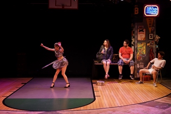 Now in its world premiere production at Park Square Theatre, Jefferson Township Sparkling Junior Talent Pageant is an original musical about 30-year-old Frannie's return to her hometown after failing at success in the big city. Chagrined and carrying a notable chip on her shoulder, she moves back into her childhood bedroom and takes a job at the IGA grocery store. The guy training her to stock shelves turns out to be a Liam, a former classmate who is now a 30-year-old stoner and, more importantly, her former rival for the Jefferson Township Sparkling Junior Talent Pageant crown. Liam's best friend Travis stops by and rekindles desire within Frannie, who had a major crush on Travis when he was a high school football hero. In a dizzy combination of the "hey, kids, lets put on a show" motif and Frannie's incipient need to settle old scores, the trio decides to revive the pageant. Frannie and Liam will perform their old routines (Liam even still his now obscenely tight-fitting sailor costume) and Travis will organize the big event. This may not be the most logical strategy for Frannie to get back on her feet, but she dives into it, both to find out if she still has a shot at being appreciated by the town she had snubbed and to find out if she still has a chance Travis, whose body has morphed from a quarterback's firm physique into a "dad bod in the best possible way." Then Travis visits Val, who won win the pageant twenty-one years ago and has built a life around public appearances and commercial endorsements as the "reigning Sparkling Junior Talent Pageant." Travis thinks it would be classy to have Val crown the next, albeit much delayed, winner. Val, however, has no intention of letting go of her title, which is pretty much all she has going for her in Jefferson Township, especially since her latest girlfriend left her. To add to the tension, Frannie and Val had been best friends in high school, but over the years a schismfor which each blames the otherhas come between them. All gloves are off as Val, Frannie and Liam connive to win the pageant, with affable Travis trying his best to referee their plotting. Jefferson Township Sparkling Junior Talent Pageant first came to life at the 2017 Minnesota Fringe Festival. Park Square associate producer Laura Leffler caught one of those performances and recruited writer-composer-lyricist Keith Hovis to pump the show up from the 55-minute limit placed on Fringe shows into a full-length two-act musical. The show was given a berth as the last production of the 2018-2019 season on Park Square's Boss Thrust Stage, with the same four game and highly talented actors repeating their fringe roles as Frannie, Liam, Travis and Val. Leffler herself took the helm as director. Hovis has stated that he drew on his own childhood in a small Minnesota town to create Jefferson Township. He twists together an affectionate dig at small town living; people taking stock of themselves at certain benchmarks in life; melding one's past, present and future into something whole; and the search for a saving grace in a life that has run aground. All of it is cast in a cloud of silliness that never takes itself too seriously, even when on occasion it touches an emotional nerve. Act one sets out the lay of the land for the four characters and the increasingly nasty competition. Act two presents the pageant itself, both the on-stage performances and the mayhem backstage. Hovis' dialog is packed with jokes, both one-line zingers and character-driven humorabout half of which landalong with numerous sight gags and abundant physical humor. Hovis's score is of the "easy listening rock" genre common to musicals set in the present day, tuneful though not memorable songs that alternate between comic turns and expressions of longing, regret or hope, with the first act closer, "After Today," serving as an anthem that is both sweet and cynical. "Drive-by Town" provides a good sense of people who decry the lack of excitement in their sleepy burg, yet still find comfort in calling it their home, and back-to-back numbers "Frannie's Lament" and "Last Place Frannie" go a long way toward fleshing out her character's emotions. Hovis gives Val a terrific, self-aggrandizing number to perform in the pageant, the unlikely named "Dear, Dead Grandma," and a spectacular piece for Liam's showcase, "Liam's One Man Musical," which is both irreverent and inspiring. Frannie and Travis have a moment of sweetness in "Beautiful" that is genuinely moving. What misses? Frannie is too smart to believe that her future happiness depends on resurrecting and winning this silly talent show. It starts as a lark, which seems plausible, but as the stakes get higher the whole enterprise becomes hard to buy into, so the emotional investment peters out. Also, adding an ensemble to flesh out some scenes might have helped to create a sense of Jefferson Township as an actual community, rather than four millennials each lost at sea in their own way. The quartet of actors give their all to the proceedings. Kelly Houlehan conveys Frannie's frustration and humiliation in returning home, and then gradually rebuilds connections to her former life. Houlehan has more songs than any of her castmates and delivers them with a smooth voice that conveys her feelings. Ryan London Levin is hilarious as Liam, a stoner whose anti-establishment stance on life is starting to wear thin. Levin, who has more typically been cast in roles calling for dignity, here has a chance to be a clown, and he handles it with panache. Zach Garcia radiates sincerity as Travis, the football hero whose star has fallen and is now trying to make a decent life for himself with the resources at hand. Leslie Vincent captures Val's vanity and self-absorption, and excels at using her physicality to amp up the humor. The four play off one another well, making it believable that they have a history with each other that is pushing itself back into their lives. Director Leffler 