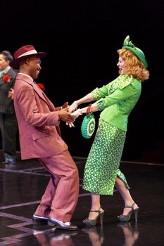 The best of these shows played the 1940s and into the 1960s, and I would not be the first to suggest that the form reached its zenith in 1950 when Guys and Dolls broke loose on the stage of the 46th Street Theatrerenamed the Richard Rodgers Theatre, where another game-changer called Hamilton now plays, thrilling a new generation of theater lovers, along with us older folks. The Guthrie has mounted Guys and Dolls, the gold standard for golden age musicals, for a summer run, and the show is as jubilantly brash, tuneful and sentimental as ever. Frank Loesser's classic score, heaped with standards and spot-on novelty numbers, sounds great, with fresh, energetic orchestrations by Darryl Ivey, lushly performed by a ten-piece orchestra (visible on a platform at the rear of the Wurtele's thrust stage) under J. Oconer Navarro's direction. With tunes like "Sit Down, You're Rockin' the Boat," "Luck Be a Lady," "If I Were a Bell," "I've Never Been in Love Before," the robust title song, one of the most hilariously character-perfect specialty numbers ever written, "Adelaide's Lament," and the sharply witty musical squabble "Sue Me", how can you go wrong? The creative team let their imaginations go wild with elaborate, brightly hued costumes by Kara Harmon that both pay homage to and spoof the 1950s era setting, seizing opportunities to add to the broad humor with outlandish showgirl get-ups and a particularly coy costume for the detective, Lieutenant Brannigan. The Manhattan skyline set by Jason Sherwood practically pops off the stage, shifting with ease to become a night spot in Havana, a sewer used for a high stakes game of craps, or the assembly room of the homespun Save-a-Soul mission. Dawn Chiang's lighting enhances the faux sophistication of the Hot Box Revue night club, the romance of that night in Havana, and the suspense building around the roll of the dice. The story that all this music, comedy, and lavish design enfolds is based on Damon Runyon's stories of life in the fangless New York underworld of the 1920s and 1930s. The characters are gamblers, thugs, strippers and hangers-on, all trying to scratch out a living and evade the long arm of the law. It is noteworthy that the only one of these individuals who seems capable of anything resembling actual violence is Big Jule, a visiting gangster from Chicago, leaving the New Yorkers who populate the show as lovable, in spite of their underhanded dealings. Two couples form the core of the plot: Nathan Detroit, who has established an ongoingand illegalcrap game, always in search of a location out of Lieutenant Brannigan's watchful eyes, and Adelaide, the star attraction at the Hot Box, who is fed up with waiting for Nathan to marry her after being engaged for fourteen years. The other couple are thrown together in the course of the show: Sky Masterson, a suave high-stakes gambler who gets tricked into a bet that he can't get Sarah Brown, the prim, unyielding leader of the Save-a-Soul mission whose band marched through Times Square playing "Follow the Fold", to fly off to Havana with him for dinner. Throw in Sarah's determination to keep the struggling mission from being shut down by regional chief, General Cartwright, and Big Jule's insistence on Chicago-style craps rules, and you have yourself a story: goofy and contrived, but craftily plotted with so much good will that we readily surrender to it. Director Kent Gash has stated his desire to bring Guys and Dolls in step with today's sensibilities nearly 70 years after it first opened, with changing views of women pinning their hopes for happiness on hapless men, and its affectionate attitude toward underworld characters. I am not certain he wholly succeeds in this effort, though the cavalcade of design effects and breathless, inventively staged dance numbers, choreographed by Dell Howlett, give the show a contemporary sheen. What comes closest to nudging the plot toward 2019 is an extra portion of intelligence given to the two leading ladies. Typically, Adelaide is presented as a complete ditz, but here, in a powerhouse performance by Kirsten Wyatt, we see her intelligence and her determination to take control over this engagement that is reaching its expiration date. Similarly, Sarah Brown as written makes a 180 degree turn after one night in Havana and a few highly alcoholic beverages, a shift that requires suspension of disbelief. Olivia Hernandez gives a vibrant portrayal of the missionary as knowing exactly what she is doing, letting herself loose, yes, but not being led astray. These changes in focus do not alter the thrust of the plotline or alter the outcome in any way, but make it easier to accept the default premise, that these guys and those dolls need each other. To state the degree to which these actresses outshine their male counterparts is only to heap praise upon Hernandez, with a beautiful voice for songs like "If I Were a Bell" and "I'll Know," and Wyatt, who brilliantly maintains that air of intelligence while mining the comic gold embedded in the role of Adelaide. That said, Rodney Gardiner is terrific as beleaguered Nathan Detroit, put-upon by his fiancée, by the gamblers and by the cops, and just trying to catch a break. As Sky Masterson, Jeremiah James has the suave looks and sultry voice to make his boast of being able to get "any doll he wants" to go to dinner with him credible. He brings immense warmth to an introspective moment singing "My Time of Day," segueing into the sweeping romantic proclamation that "I've Never Been in Love Before." The rest of the cast all do swell work, with kudos especially to Peter Thomson's wise and tender-hearted Arvide Abernathy, who councils Sarah on love ("More I Cannot Wish You"), Regina Marie Williams as upright General Cartwright who lets loose when the prayer meeting heats up, Jon Andrew Hegge as a super-limber Harry the Horse, and Karen Wiese-Thompson, a veteran of Twin Cities stages making her Guthrie debut and a brilliant cho