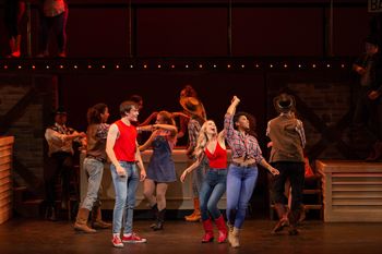 When 1998 rolled around and Footloose opened as a stage musical on Broadway, I shrugged it off as an obvious commercial ploy and declined to see it there, on tour, or in any of regional and community theater stagings that crossed my path. Though reviews for the Broadway production were on the soft side of mixed, it ran for 709 performances, buoyed by good will generated by its popular title and catchy title song. I finally succumbed to the lure of all that pop catchiness and made it to the current staging of Footloose at Artistry. I must report, I had a ball. In part my resistance was broken by knowing that over the past few years Artistry has drawn joy out of even a weak property, such as last spring's Victor/Victoria, to say nothing of the jewel-like work they bestow upon gems like She Loves Me. Once again, Artistry did not disappoint. Director Ben McGovern, with very modest stage technology (compared, say, to the Ordway's gloriously abundant 42nd Street I had seen just the night before), keeps the show constantly moving, with seamless scene changes and a satisfying balance between focus on characters and emotions during the book scenes, tenderness during song scenes added to give the adult characters time to develop, and let-out-all-the stops gusto during the dance scenes at the heart of the show. Footloose is, after all, about the undeniable joy of dancing, its youthful energy revitalizing to elders as well. The story is based on the actual town of Elmore City, Oklahoma, which had a ban on dancing since its founding in 1898 as an attempt to decrease the amount of heavy drinking and teenage sex. The ban held until 1980 when the town school board voted 3-2 in favor of a student-led campaign to hold a junior prom, and caught the attention of People Magazine. Dean Pitchford, who wrote the screenplay and with Broadway director Walter Bobbie wrote the book for the musical, set the story in the fictional town of Bomont, Utah, and devised a more dramatic backstory for the dancing ban: instigated five years before by influential Reverend Shaw Moore in response to the death of four promising high school students killed in a car crash while returning from a dance. The fact that drinking was involved also played into it, drawing an association between raucous dancing and drinking. The creators also provide a fresh-faced protagonist, newly transplanted 17-year-old Ren McCormack from Chicago. Ren is an outgoing young man and avid fan of Chicago's dance clubs. He harbors a wound from his father's abandonment of the family 13 years before and has been forced to follow his cash-strapped mother to this middle-of-nowhere small town where they will live with his pious aunt and uncle. In short order, Ren makes two friends: a hick cowboy named Willard and the wildcat daughter of Reverend Moore, Ariel. Ariel is in a hot and heavy relationship with Chuck, a school drop-out with a prison record who clearly expects her to tow his line. Needless to say, the dynamics between these characters are all re-arranged, and Ren becomes a high school hero by championing a reversal of the ban on dancing In order to hold Bomont's first school dance in five years. Six songs in the stage musical were in the original movie, all with lyrics by Dean Pitchford, with Tom Snow and a cabal of other then-hot pop musicians composing the music. Those six are "Footloose," "Somebody's Eyes," "Holding Out for a Hero," "Almost Paradise," "I'm Free/Heaven Help Me," and my personal favorite, "Let's Hear It for the Boy." Single releases of each of those made the pop-music Billboard charts, and the movie's soundtrack album knocked Michael Jackson's "Thriller" from the #1 spot, where it remained for ten weeks. While these songs are all solidly composed pop tunes, each also works to support the narrative, as good musical theater songs do. Additional songs were written by Pitchford and Snow for the stage production: "On Any Sunday," for the church choir, establishes the piety of the Bomont community; "I Can't Stand Still" demonstrates Ren's restless nature; "Learning to be Silent", sung in tandem by Ren's mother, Shaw's wife Vi, and Ariel, laments the expectation that, as females, they are not heard; "Heaven Help Me," is Shaw's plea for divine guidance in reaching his daughter; "Can You Find It in Your Heart" is Vi's appeal to Shaw to forgive Ariel; "Mama Says" is a delightful comic number shared by pals Willard and Ren; and "I Confess," is a powerful eleventh-hour soliloquy for Shaw, cut from the score in a 2005 revision but wisely restored to this production by the Artistry creative team. Like the songs carried over from the movie, all of these serve the purpose of advancing the story. A good part of the energy in Artistry's Footloose comes from the cast, who give high voltage performances. A young actor named Ethan Davenport gives a remarkably polished turn as Ren, singing, dancing and acting with the confidence of a far more experienced performer. We'll keep an eye on him. Angela Steele, a winning Elle Woods in Artistry's Legally Blonde a year ago, gives a strong performance as Ariel, conveying the hurt and anger beneath her rebelliousness, delivering strong vocals and great moves in her dance scenes. Paul Coate, an Artistry mainstay, is excellent as Reverend Shaw, his ferocious piety masking his pain, with a clear, powerful baritone that conveys his feelings through his songs, as well as his church sermons. Shana Eisenberg is touching as Shaw's wife Vi, struggling to balance the needs and emotions of her daughter and husband. Reese Britts is endearing as Ren's awkward wing man Willard, and Erin Nicole Farsté shines in each of her scenes as Ariel's friend Rusty, who has a crush on Willard. Jennifer Eckes is persuasive as Ren's mom, wanting to support her son while needing to fit in in their new home. The strong dancing ensemble bring numbers like "Footloose," "Holding Out for a Hero," and "Let's Hear It for the Boy" to life with high energ