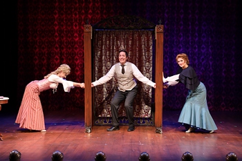 Several years ago the national touring company of Gentleman's Guide came to Minneapolis, presenting an altogether enjoyable staging of the Broadway original. The venerable Old Log Theatre has the honor of being the first local theater company to mount their own version of this farcical show. Hats off to Old Log, for they deliver every shard of the hilarity, the satiric wit, and the musical brio of a show that is that rare item, both truly a musical and truly a comedy. A Gentleman's Guide to Love and Murder is based on the novel "Israel Rank: The Autobiography of a Criminal" by Roy Horniman, which also inspired the 1949 English film Kind Hearts and Coronets. The central character is an impoverished young man whose mother was disowned by her aristocratic British family because she married "for love," and beneath what her forebears declared to be their station. To right the injustice done to him, Monty resorts to murder to climb up the branches of the family tree he had been denied. An interesting note, in Horniman's novel the folly of the mother of the title character, Israel Horn, was to marry a Jew. In the 1949 movie director Robert Hamer changed the lead character's name to Louis Mazzini and made his father Italian. Robert L. Freedman, who wrote the book for the musical changed his nationality again, re-christening him as Montague "Monty" Navarro, and his father a Castilian. Clearly, the social-political context of each iteration of the story dictated which ethnic group can be mocked, which may be why Monty's father is called Castilian and not Spanishthe former sounding more remote from contemporary strictures. The murders of the D'Ysquith heirs are committed in ingenious fashion, each victim representing a different specimen of the upper-class: a smug playboy, a dithering clergyman, a philanthropist whose giving is a form of vanity, a talent-less stage diva, a foppish gardening enthusiast, and so on. This allows numerous opportunities for physical comedy and wordplay, both of which are abundantly present. The plot is also complicated by conflicting love interests. At the start, empty-pocketed Monty is hopelessly smitten by Sibella Hallward, who enjoys toying with Monty but has her sights set on a well-off suitor. When Monty asks Sibella if she ever considered marrying for love she recoils, protesting "Now you're being cruel!" In the course of his murderous path through the D'Ysquith family, Monty meets lovely and sensitive Phoebe D'Ysquith, who responds to his tender comfort as she mourns a deceased relativenever guessing, of course, who the murderer isby falling in love with Monty. Freedman's bookwhich deservedly scored a Tony Award of its ownis awash with humor, and cleverly constructed so that even when we can more or less guess the direction in which things are going, there are still constant surprises, right up to the very end. Of course, this kind of affair has no character development, other than Monty's descent from poor but earnest and virtuous young man to self-serving, obsessed murdered: in that way perhaps like Sweeney Todd, though much funnier. Freedman collaborated with composer Stephen Lutvak on the lyrics, which are as witty as the book. How can anyone not be tickled when an assemblage of mourners wondering why so many of the D'Ysquith's are dying, sing "Suddenly they're congregating underneath the sod!" or Lord Adalbert D'Ysquith's treatise on the absurdity of being poor, "I Don't Understand the Poor." Lutvak's music is in an English music hall veinthe year is 1909bringing to mind The Mystery of Edwin Drood, which is not at all bad company. Musical styles range from patter-like to romantic to drinking songs to the requisite anthem, the stirring "The Last One You'd Expect." It is not a score containing songs for the ages, but it fits the show like a custom-tailored glove. Eric Morris directs Gentleman's Guide with a full awareness that the only aim here is to entertain. This show is not meant to enlighten, to probe, or to provoke. It is meant to prompt laughter and evoke delight, which it does continuously, earning an A in its class. There is only modest choreography, the musical staging by Joey Miller primarily consisting of group formations, but it suits the material and the space well. The concept of casting the aristocratic victims, male and female, with the same actor offers a plum comedic role. David Beukema takes on the challenge at Old Log and runs away with it, drawing hearty laughs every inch of the way. Among the eight D'Ysquiths, his ham-baked take on effete, garden-loving Henry, who insists to Monty that "It's Better with a Man," and the fearsome Lord Adalbert, who reveals his greatest passion in "Looking Down the Barrel of a Gun," particularly stand out. Monty is played by Max Wojtanowicz, whose beautiful voice is well known to Twin City theatergoers, and whose comedic gifts are put to splendid effect. Monty's competing desires for Phoebe and Sibella give Wojtanowicz the opportunity to shine, and his self-effacing delivery of "Foolish to Think" is surprisingly moving. Elizabeth Hawkinson plays Phoebe, her lustrous soprano giving sparkle to everything she sings, in particular the jewel-like "Inside Out." She also delivers the comedic thrust of the role, one which is more subtle, in keeping with her character's nature. Emily Scinto is delightful as Sibella, conveying the lust and craftiness of a young woman looking out for herself, singing with great flourish in "I Don't Know What I'd Do" while expressing unbridled egotism. She matches Hawkinson perfectly in their duet "That Horrible Woman," and Scinto, Hawkinson, and Wojtanowicz make the five-minute "I've Decided to Marry You" into a comic gem, combining bright lyrics, flawless staging, and perfectly attuned performances. The ensemble takes on a variety of the smaller roles throughout Gentleman's Guide, and all do excellent work. One would have expected Deidre Cochran, as Miss Shingle, the old family friend