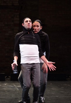 From the moment of their vaudevillian entrance on stage, these two sublime actors are "on." They mug for the audience and for each other and, in a series of antic skits, give us two histories of civilization. One goes back to our early non-human ancestors as they encounter fire, sex, aggression, territoriality, and nationalism, equating the current spate of nationalistic movements around the world to the impulses of the "lizard brain" inheritance we carry from those early ancestors. Their characterization is bawdy, brash, and decidedly without nuance, offering sweeping depictions of the ungainly march of human progress from ape to our current specimens. Their second history is a riff on the creation of the world as found in the Book of Genesis, with Keepers and Agnew quarrelling over who gets to play God until they decide that they'll both be God. For no discernible reason other than it makes them sound ridiculous and vaguely sinister, they give their God a heavy-handed Russian accent, the kind of low-ball accents used on "Saturday Night Live" comedy sketches. After six days of hard work, the Gods want to rest. They create a five-star resort with oceanside golf, casinos, and tropical cocktails for themselves, conjuring up a current hotelier who has amassed tremendous power of his own. This leaves the fornicatorsas the Gods have decided to call the humans they createdin charge. Trouble ensues. Both halves of What If tell stories heavy with meaning and reflective of the world we live in today, and both are presented with a minimum of props, virtually no scenery, and brilliantly simple costume choices (the work of costume designer Sonya Berlovitz). The first half has two narratives that, against all odds, are intertwined, a positive view on the connectedness of our human family. The second half shows two different ways of looking at where humanity began and how we got to be in our current pitiful state of affairs, using comedy to make more palatable the troubling truth being dispensed. The three actors appearing in What IfAgnew, Epps and Keepersare all gifted performers, putting their talents to sterling use. Director Dominique Serrand holds a dual focus: to keep the audience engaged in the stories told, while calling attention to the means of their deliverythe messenger from aloft versus the mischievous clowns. These suggest we may be moved by appeals to our higher instincts, or provoked by jabs and pokes and liberty-taking that appeal to our baser instincts. Marcus Dilliard's lighting aids in establishing narrow or broad views of lives lived. I found the first half to be more effective, perhaps responding to the more disciplined approach taken, but both halves made striking points, each putting to brilliant use its chosen form of theater-making. At one juncture, Agnew and Keepers discuss the difference between a play and theater, fearing that while they are doing "theater," the audience may prefer "a play." To my mind, both are incredibly necessary means by which we make sense of ourselves, past, present and future, both as individuals and as communities of all types, including the community composed of all humanity. What If holds up to the light the inherent value of theater, of plays, and of audiences. It does this through stories that touch at the core of humanity, while being moving, provoking, and entertaining. It is not only a play, but theater itself, on display for our amazement. The Moving Company's What If, runs through December 29, 2019, at The Lab Theater, 700 1st Street North, Minneapolis MN. Tickets: $32.00, $38.00; $20.00 for students. For tickets and information, visit themovingco.org. Conceived by: Steven Epp, Nathan Keepers and Dominique Serrand; Director: Dominique Serrand; Playwrights: Part One Stephen Epp, Part Two Sarah Agnew, Nathan Keepers and Dominique Serrand; Costume Design: Sonya Berlovitz; Lighting Design: Marcus Dilliard; Assistant Director: Cara Phipps; Stage Manager: Chloe Brevik-Rich. Cast: Sarah Agnew, Steven Epp, Nathan Keepers. |