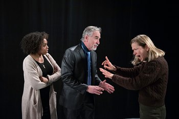 Like many contemporary couples, Michelle and Robert meet online, and after some conversations via email and on the phone, have their first face to face meeting in a coffee shop. Each is intrigued by the qualities they sense in the other, with a feeling that it might be "right"in spite of, and not because of, the obvious fact that they are of different races. The Viking and the Gazelle was written and produced (under the auspices of The Waterfront Productions) by real-life married couple William P. Bengtson and Suzanne Bengtson, who based the play on their own journey as a mixed-race couple very much like Robert and Michelle. Since we know that the Bengtsons have made it past the minefield and seem to be still very happily together, from the start we need not worry about where this budding romance will lead. However, their nearest and dearest are pretty alarmed. This includes Robert's childhood buddy Sam, who makes no bones about his view that black people "feel we owe them something"; Rajesh, an Indian immigrant who felt he had no obvious group to identify with, and having to choose to associate with the whites or the blacks, chose whites; and his Aunt Lisa, who bristles at the notion that there is still any racism in society. On Michelle's side, her BFF Sheila conjures all kinds of reasons for Michelle to back away and run, warning her the man must be married, still lives with his mama, or is into some weird sex thing. Her comeback to Michelle's announcement that she might go with Robert to his family cabin up north is priceless. Sheila's husband Karsen is worse, not even willing to talk to Robert when they meet. In spite of these naysayers, Michelle and Robert draw closer and closer. At the start, Robert is blind to ways Michelle is subjected to racism on a daily basis, such as her inability to be seated at a posh restaurant, or her terror at being pulled over by the police for speeding. Perhaps the biggest stumbling block is The Gazelle, a private club that caters to African Americans where Michelle feels free to totally be herselfbut does not want to bring Robert. Not just because she knows he will be unwelcome, but because she relishes a total break from a world that is dominated by white culture and white privilege, and that having Robert there, open-minded and well-meaning as he is, would change that dynamic. To Robert, The Gazelle represents reverse racism; to Michelle it is self-validation. Lest this all sound pretty heavy-going, a great deal of humor runs through play, with very funny episodes shared by Robert and Michelle, like teaching each other to dancewhite folks dancing and black folks dancing, respectivelyand a running joke about sushi. Sam and Sheila each contribute a barrel of laugh lines as well. The Bengtsons have a good handle on writing dialogue that is authentic, both in its serious moments and when things turn breezy or even raucous. The step by step progress of their narrative rings true: after all, it is. They wisely chose to stop the play at a key decision point, not for us to guess how it all endswe already know thatbut how Robert and Michelle each process what a key juncture, what concessions each will make, and how they will embrace the fact that such junctures are likely to continue occurring throughout their lives together. The lead-up to that conclusion, with Sam fully revved in assault mode and ready for action, feels a bit much, but it brings welcome levity to an otherwise very sobering string of events. Frequent collaborators E.G. Bailey and Sha Cage co-direct the play, keeping it well-paced and allowing its salient points to come organically out of the situations and dialogue, without marking them in yellow highlighter. They make good use of a clever stage set designed by Laura Vaillencourt and John Lutz, which places Robert's apartment on one side, Michelle's apartment on the other side, and a central dining area that is part of both domiciles, and also serves as restaurants and coffee shops where the characters face the social context of their differences in public. Claudia Errikson's lighting design adds subtle shifts in mood to each of these spaces. Gabriele Angieri creates a strong profile as Robert: aggressively extroverted in a manner that can hint at being a cover for hidden insecurities. Thoughtful, affable, and witty, his perspective is obscured by the white privilege that he has benefitted from, but he does sincerely seem willing to see things more clearly. Pascha Fountain, making her Twin Cities theater debut, is a real find as Michelle. She conveys Michelle's inner strength that has allowed her to survive and thrive through hard times, but also the longing to lower her guard for someone who can be a true partner, so that she no longer has to go it all alone. Still, she will not compromise who she is or what she valuestruly a fully drawn portrait of a complex woman. MadelineKarita Fleming is hilarious as Sheila, with a no-nonsense approach to life showing she will not suffer fools and is determined to keep her soul sister Michelle from suffering any. Rex Isom Jr. does fine work as Karsen, hot headed at first but eventually showing the ability to reason through a tense situationeven if his "reason" does not square up with Robert's "reason." Paul Economon is convincingly low-brow as Sam, gathering an arsenal of guns to be ready for "when it all goes down." He conveys a puppyish loyalty to Robert, in spite of the wide differences in their world views. Varghese Alexander is amusing as Rajesh, an immigrant himself who has found it convenient to shield himself from outsider status. As Aunt Lisa, reliable actor Laura Esping captures the scourge of prejudice and bigotry wrapped up in comforting assumptions and self-congratulatory statements of color-blindness. She sees herself as too good a person to perpetuate anything as untoward as racism. There are a few small dramaturgical touches that slightly mar The Viking and the Gazelle: a statement mad