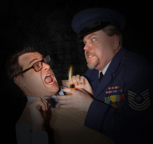 Theatre in the Round Players is giving Black Comedy a rollicking production that doesn't miss a beat of its comic mayhem, thanks to crackerjack direction by Brian P. Joyce and a cast that has mastered the split-second timing required to pull off this barrel of hijinks. The play premiered in London in 1965 (in a production featuring a young Maggie Smith, Albert Finney, and Derek Jacobi) and was brought to New York in 1967, featuring Geraldine Page and the Broadway debuts of both Lynn Redgrave and Michael Crawford. The manners and morality built into the play are very much of that decade, and it now comes across as a period piece, though in no way stodgy. The title has a specific meaning, as the majority of this ninety-minute one-act takes place in the dark. Not to worry, the audience sees all that is going on, but the characters stumble about as if trapped in utter blackness. The play opens with aspiring artist Brindsley Miller and his fiancée Carol Melkett fussing about in his flat as they await two oddly matched visitors: the millionaire Georg Bamberger, an art aficionado to whom Brindsley hopes to sell his works of abstract sculpture, and Carol's father, Colonel Melkett, a military man who cares not a whit for art, but prizes stalwart efficiency. The couple seek his approval as they plan to announce their engagement. To keep the Colonel "in the dark" concerning Brindsley's lack of financial success, he and Carol have swapped his broken-down furniture for the elegant antiques owned by his neighbor Harold while the latter is away for the weekend. This without Harold's knowledge, as Harold is extremely attached to his valuable furnishings and would never have permitted them to be taken off his premises. Surely, though, there will be no harm done and the furniture will be returned with Harold never being any the wiser. We strain our eyes a bit to see Brindsley and Carol in this opening scene, as it is performed in the dimmest of indirect lighting. When a burnt fuse suddenly shuts their power off, they are left in the darkbut for the audience, the lights come up full strength. Brindsley and Carol stumble about, their arms jutted out to detect walls and other obstacles, while we see their every awkward move. In short order they are joined by another neighbor, Miss Furnival, who seeks company as she is afraid of the dark, and then Colonel Melkett, who is very put out by Brindsley's lack of preparation for a power outage. The electric service is called but provide little comfort, saying that a repairman may come out at some point. Things take another turn toward bedlam when two more, most unwelcome visitors arrive: Harold, whose weekend away has been called short; and Clea, Brindsley's randy ex-girlfriend, who may not be quite as "ex" as Carol has been led to believe. For the most part, though, characters feel and stumble their way about in the dark as Brindsley tries valiantly to fix things so that no onenot Harold, not Carol, not Clean and not the Coloneldiscovers his deceptions. All the while he awaits Mr. Bamberger, on whose patronage all of his hopes depend. We have no trouble laughing at Brindsley's misfortunes. He is not a very likable chap, and he clearly got himself into the dilemma at hand by misrepresenting himself in a cowardly fashion. Carol has a ghastly habit of adding "poo" to the end of words, so she describes the décor as "rich but not very gaudy-poo," and a protest that "I am not simple!" becomes "I am not simple-poo!" The Colonel has a fetish for reducing all human behavior to absurd shorthanded initials: B.E. (basic efficiency); D.D (determined defeatism); and so on. There is a teetotaler given over to drink, mistaken identities, speculation about kinky games being played in the dark, and numerous pratfallsall this and more in the name of a giddy laugh fest. Eight actors form a well-tuned ensemble, physically in step with the illusion of not being able to see one another. Holding the center is Josh Carson as Brindsley, performing the besieged host with panache. Carson manages to convey all of the reasons we are appalled by Brindsley, while still drawing us in to thoroughly enjoy his company. Kendra Alaura is feisty and sexy as Clea, conveying the brains and grit beneath the good-time girl façade. As Carol, Kaitlin Klemencic is a sensible and obliging alternative to Clea, underscoring her feigned meekness with every "poo" added to every sentence. Don Maloney is a bracing Colonel Melkett, sputtering out his alarm and suspicions about Brindsley's mental state, yet never a very real threat. Alison Anderson is quite hilarious as Mrs. Furnival, whose tight grasp on decorum gives way to sloppy, slithery abandon before the night is through, while Matt Saxe creates a perfectly formed Haroldurbane, tightly wound and possessive. H. William Kirsch and Don Larsson complete the ensemble, and one and all maintain the fast pace of physical comedy and sharply exchanged dialogue that never stops for a breath. The set, surrounded in Theater in the Round on all sides by the audience, is designed by Lee Christiansen to be convincing as a shabby apartment punctuated by interesting modern art pieces, with some quality antique furniture that seems frankly out of place. A step-up to the liquor cabinet provides just one of the numerous opportunities for characters to trip in the dark, or resort to moving about on their knees. An annex to the stage, atop a set of stairs through the audience, provides a loft for Brindsley's untidy bedroom. A. Camille Holthaus's lighting design assures us of seeing all that takes place "in the dark," with lights dimming whenever a bit of light breaks out on stage, as when a character strikes a match, or a flashlight (or, this being Britain, a torch) makes a brief appearance. Costume, sound, and prop design serve the production well. Plays like Black Comedy require a suspension of disbelief. Can we really believe that no one in a London apartment building has candle