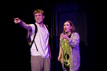 These two lost lambs share a genuine cord of affection, but also despise one another because each represents the fact that no one else in their world will have them. Myers and Saggau also play all the other characters who make Sebastian and Claryssa's lives a living hell: teachers, police officers, parents, the bullies and mean girls at schooland one character who comes to life, at least for Sebastian, his namesake Saint Sebastian. Australian playwright Declan Greene wrote Moth in 2010, his first commissioned work. It was produced by Melbourne's Arena Theatre and immediately acclaimed. Since then Greene has been a rising star among Australia's dramatists. This year he assumed the dual roles of artistic director and CEO of the Griffin Theatre in Sydney, Australia's leading company devoted to the development and production of new work. Moth makes it easy to see why Greene is so highly regarded. This impressive sample of his work is being staged at Bryant Lake Bowl for just two weekends. Greene's dramatic structure never quite makes it clear what we are seeing, which is one of the play's strengths. At times Sebastian and Claryssa seem to be telling one another the story of what has happened to them, reliving each heartfelt episode for one another, with Sebastian often breaking into utterly silly burlesque renditions of the people mentioned, and Claryssa telling him with as much severity as she can muster, to knock it off. Other times, it feels like we are in the present, watching things occur in the now, rather than being reported to us in retrospect. Then there are the dreams, with both Claryssa and Sebastian having vivid dreams, both fanciful and fearful, with so much connection between them that at one point one asks the other "Wait, is this your dream or mine?." This fluidity in perspective mirrors their untethered lives, where they truly have difficulty distinguishing their present danger from past pain, or knowing the difference between what they dreamed and what they lived. This all calls for razor-sharp performances. Both Myers and Saggau are remarkable, delivering both the authentic voice of lost youth, and the intelligence of deeper insights into these characters. They constantly pivot from character to another by altering their voices, their posture, and the muscles in their faces, losing not a second in the transition. In one harrowing scene, a bully named Clinton catches Claryssa kissing Sebastian in an open field and mercilessly taunts them, insisting that Sebastian was out "walking the dog," in cruel reference to Claryssa. Soon the word "walking" is replaced by the word "fucking," and when Sebastian tries good-naturedly to deflect the accusation, Clinton and his pals attack himjust because he is such an obvious, pathetic victim. Claryssa looks on, furious that Sebastian didn't defend her honor, horrified to see her only friend treated like garbage, with Saggau switching line by line between Claryssa and Clinton. Myers makes the same instant transitions back and forth between the flesh and blood Sebastian and his fever dream vision of Saint Sebastian, gauntly looking down from the crucifix to which he is bound. Myers also has a remarkable gift for physicality, including the ability to leap high in the air and land cross-legged, seated on the floor. Both actors deliver astonishing work that cuts to the gut. Director Ben Lohrberg shows a firm mastery of this challenging dramatic structure, drawing out the powerhouse performances, and ensuring that the two mesh seamlessly with one another. Lohrberg builds the growing tension that mounts throughout the play, with a climactic scene that threatens to unleash annihilation to all parties, without sacrificing the tender moments and heartbreaking secrets Sebastian and Claryssa share. This is truly a small scale production, but with large impact. In addition to directing, Lohrberg designed the lighting and sound, both of which are tremendously important elements in telling the story and in shifts between the now, the past, and the dream state. Actor Sophina Saggau also devised the costumes, which are appropriate for each character: drab and a bit threatening for Claryssa, a bit juvenile looking for Sebastian. There is no set, nor would it make sense to have one. A black curtain that wraps around the sides and rear of the tiny stage at Bryant Lake Bowl provides hiding places from which Sebastian sometimes pounces out, like a cat made giddy from catnip. Sebastian's encounter with Saint Sebastian results in the boy believing that he has been given a holy mission. His image of Saint Sebastian dissolves into a swarm of the creatures that give the play its name. Near the play's end, Saggau and Myers stand back to back, creating a beautiful realized illusion of the myth Sebastian endeavors to inhabit, believing himself to be the avenging angel that his world richly deserves. While Sebastian and Claryssa are equally present and compelling characters, it is the boy's journey that drives the narrative and that we feel most deeply. At the end of MothI found myself connecting Sebastian and Claryssa's misery with some vestigial pain from my own distant adolescencepain most adults, if they are honest, had in some form or other. I wanted to be able to assure them that things will turn out well, that they are just fine, and that it is the world that is screwed up. But, because of the world they live in, it is impossible for them to hear that message. It is a sign of engaging theater when the audience takes interest in a work's characters. Moth took me a further. Not only did I find myself interested in these two emotionally bedraggled kidsI found myself loving them. Moth runs through March 7, 2020, at the Bryant Lake Bowl, 810 W. Lake Street, Minneapolis MN. Tickets are $20.00 at the door, $18.00 in advance. For tickets and information, call 612-825-8949 or visit bryantlakebowl.com. Playwright: Declan Greene; Director, Lighting Design and Sound Design: 