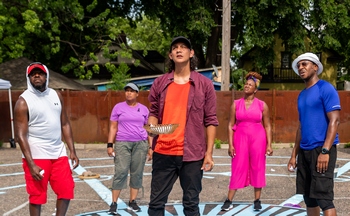 Pillsbury is back with a live production searingly connected to last year's historic events that took place just three blocks down Chicago Avenue, the spot where George Floyd was murdered. What to Send Up When It Goes Down, by Aleshea Harris, was first staged in 2016 at Occidental College, long before George Floyd became known to the world. A 2018 Off-Broadway production drew praise, followed by mountings in Cambridge, Washington D.C., and a return Off-Broadway production just last month. Now it is scorching earthor, precisely, the parking lot next to Pillsbury Housein Minneapolis. Harris describes What to Send Up When It Goes Down as a blend of play, pageant and ritual. It comes with instructions to draw from the freshest source of pain inflicted on the community where it is staged, specifically of a Black life snuffed out for the crime of being Black in a society framed from its inception on white supremacy. In 2016, Harris told the Huffington Post: "It's a piece that is, ideally, a tool that communities can access when they're in crisis after someone has been killed ... Every oppressed population, every marginalized population needs tools for coping, and I hope that this can be one for Black people." In Minnesota, though there are more recent instances of Black people killed by police, the theater's proximity to Cup Foods and the intersection of Chicago and 38th Street that has been christened George Floyd Square, draws all involved to make that paramount connection. The playwright and the producers unabashedly claim this work as a play for African Americans. That is clearly stated in promotions for the play and at the onset of the performance. All are welcome, we are told, but white people and other non-Black audience members are asked to be respectful and to appreciate the show through the lens of those for whom it is intended. The performance I attended was at close to capacity, which is fifty people, and fewer than a fourth of those were Black, but that made no difference. This is theater lovingly made for them, and though the rest of the audience is made to feel comfortable and welcome to fully participate, we understood that on this occasion we are the outsiders. Lest you be misled, the play zeros in on Black pain, but it also provides hefty helpings of Black joy. At turns What to Send Up When It Goes Down emits sorrow, frustration, anger, laughter, wisdom and hope. It does this through chants, satiric sketches, poetry, song and movement. The show begins outside the playing area, in the street side of the parking lot screened off by panels of quilts comprising community-created art. Two cast members announce the rate of Black people killed by police, relative to white people, the rate of Black people incarcerated relative to white people, and other grim statistics. With this tone set, we are welcomed in, carrying our folding chairs to designated spaces facing a raised platform encircled by rings painted on the pavement, designed by visual artist Seitu Jones. The seven cast members step up, introduce themselveseach actor uses their own name throughout the playand then invite audience members to each share our names. We ritually call out the name George Floyd. There are more facts about conditions of Black America, activities for the audience to share our feelings about these, form a collective scream. We are taught a song, "Sun Come Up," that expresses love and gratitude to balance the anguish that precedes it. The more ritualistic, participatory portion of the play shifts, winding back and forth among five theater pieces: Aimee K. Bryant and Rajané Katurah primp in front of a ladies room mirror, laughingly regaling each other about the foibles of white men; Alexis Camille circles the stage in desperation, declaiming the walls that keep her generous love from being received or valued; Derrick Mosley coaches incorrigible Mikell Sapp on avoiding the wrath of white folks (a sample: "Don't walk down the streetespecially not like that." "Like what?" "You knowbrazenly!"); JuCoby Johnson circles the stage with growing paranoia, though perhaps it is not paranoia but acute sensitivity to his reality; and a series of scathing sketches cast Mikell Sapp as a southern belle white woman, Derick Mosley as the eager to please her Black servant, and Rajané Katurah as a sardonic Black housemaid, all played in high camp with outrageous costuming from Kathy Kohl. Interlaced throughout, Ryan Colbert issues pronouncements and rhythms, and Queen Drea sends out snatches of music and sound effects from the back of the stage. The cast perform, individually and as an ensemble, with great power and grace. The sense is that they are exposing their true selves, a risk they can take because, even though the majority of the audience is white, "What to Send Up When It Goes Down" is expressly for Black people. We could not ask for more generous performances. Signe V. Harriday, newly named artistic director of Pillsbury House Theatre, directs this production to fortify that power and moderate it with the grace notes written into the play. The changes in mood, temp, and from sketch to sketch are seamlessly interwoven, so that at nearly two hours without intermission, the play does not ever drag, and is compelling throughout. The morning after I saw What to Send Up When It Goes Down I had the great pleasure of being a Harambee guest reader at a Freedom School site in Saint Paul. Freedom School is a summer learning program created by the Children's Defense Fund that aims to build self-awareness, confidence, resilience and joy in Black students. The Harambee is their daily morning assembly, full of rituals and pageantry. My reading was preceded by a song of praise set to box beats and chants of affirmation. About 150 students, kindergarten through middle school, were assembled in the gym as I read a children's book set in the last days of the Negro baseball leagues. Afterwards, the students broke out in a choral exp