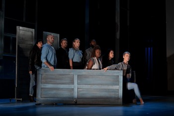 The connecting tissue of these sixteen songsreally, vignettes that reveal character and conflict in music and wordsis the fulcrum of change in people's lives, the point where they take a stand, made a decision, or face the results of past decisions. Each of its numbers feels like it was plucked from a full-bore musical about the character giving voice in song, and I left the theater wishing I could see all sixteen of those yet-unwritten shows. Brown is probably best known for The Last Five Years, which began in Chicago in 2001 and ran Off-Broadway in 2002 for only two months. But the two-character musical, easy on the budget of regional theaters, has been widely produce around this country and others, with several appearances in Twin Cities theaters, including Artistry (2018), and returned to another Off-Broadway run in 2013. In 2015 it was made into a movie starring Jeremy Jordan and Anna Kendrick that, sadly, went largely unnoticed. For his Broadway offerings, Brown has been honored with Tony Awards for best score for both Parade and The Bridges of Madison County, also scoring a Tony for orchestrating the latter. Sadly, those shows were not commercial successes despite their rapturous scores. Other musicals13 andHoneymoon in Vegascame and went quickly. Last year 13 was adapted as a feature film, now awaiting release, so that show's poppy-emo score that captures the pain of adolescence to a tee may yet find a wider audience. Back to 1995, when Songs for a New World marked Brown's emergence as a major talent. What was the magic? A gift for beautiful yet wholly accessible melody, and for lyrics that seamlessly merge poetic phrases with the language of the workaday world. The issues raised by the songs are specific to the character who sings it, while being relatable to anyone who has had much experience with life. That was 1995, but those themes remain relevant today. Some numbers place moral issues they raise into historical contexts which render their messages timeless. "On the Deck of a Spanish Sailing Ship, 1942", positions waves of fear and wonder felt by the ship's crew as they embark upon a world new to them, a pivot point in history that gave birth, through a path strewn with horrible and glorious deeds, to this present day. In "The Flagmaker, 1775" a woman struggles to fend off her worst fears for her son and husband at war against the redcoats, but she could as well have a loved one engaged in our recent military campaign in Afghanistan. "Flying Home" reveals the heartbreak felt when those worst fears are realized, an affliction as real today as in 1775. "The Steam Train" introduces us to a young Black man (Dwight Xaveir Leslie) with ambitions of greatness on the basketball court. He sings with bravado, but between verses tosses out statistics that reveal the true odds against a kid like him ending up not in jail and not dead. In "King of the World" we again meet a Black man (also Leslie), perhaps the same man, declaring all he could accomplish in lifeif only he was not incarcerated, expressing a clear sense that injustice that has been done to him and to those whose lives he could build if he were free. These sketches of life in 1995 feel a lot like 2021. Other songs relate to more intimate experiences. In "Christmas Lullaby", Janely Rodriguez is a Latina teenager out on her own, expressing a range of feelings about the baby growing within her. Joey Miller is a college student for whom "The World Was Dancing" is his strategy for avoiding wrong turns in life. "Stars and the Moon" may be Brown's best known song, owing to recordings by Audra McDonald and Betty Buckley. It is an entire story told in a song, of a woman looking back at choices she made at the expense of deeply felt love, with Rajané Katurah delivering her own soaring version. Humor is sprinkled throughout, with some numbers more clearly meant to draw laughs. A woman in "Just One Step" cries out for attention from a man who seems immune to her growing desperation. Later, a woman known to us all, Mrs. Claus, has similar complaints about her husband, but chooses liberation over self-pity in "Surabaya Santa," a brilliant parody of Bertolt Brecht and Kurt Weil. Both of these are truly funnyespecially as delivered by Elise Benson, a nasally challenged New Yorker in the former, and Deidre Cochran, whose déclassé Mrs. Claus brings down the house. Artistry's production of Songs for a New World has been staged by a triad of directors: Vanessa Brooke Agnes, Colleen Somerville, and Max Wojtanowicz. I cannot say who contributed what, or how the directorial duties were divided, but they have achieved a coherent vision for the show. They also have made a pair of significant alterations. One is the addition of a dancer, performed by Elly Stahlke. She is the first person we see on stage and remains visible throughout most of the show, embroidering each song and the story it tells. True, all of the cast members utilize movement in their numbers, with Kelli Foster Warder credited as movement coordinator. Leslie and Miller in particular bringing their considerable talent as dancers to their scenes. However, Stahlke's dance stands above and apart from the scenes, a kinetic framing device that emphasizes the common element of changes that abruptly alter our lives, bringing us to the shores of a new world. Stahlke, a lithe, graceful dancer, shines in an extended dance piece late in the show that seems to stamp her signature across the diverse array of scenes that precede it. Another significant change is casting the show with actors taking turns in the spotlight and backing up one another's voices, as opposed to a cast of four, as originally written. There are benefits to be had in Artistry's approach. The songs can be more closely matched to the unique talents of each performer. In addition to those mentioned above, Joshua Hinck has a warm presence and Brandon A Jackson's booming voice perfectly suits the spirituality embedded in "On t