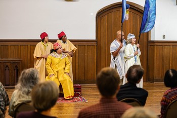 That said, the production now on tap from Ten Thousand Things Theater Company might just hold a record for hustle as it whizzes past our eyes at a delightfully breakneck pace. While the whole shebang comes and goes in just ninety minutes, each of those minutes is chock full of fun, a souffle whipped out of an ingeniously constructed (albeit preposterous) plot brimming with witty dialogue, a gallery of sublime comic performances, and exquisite direction by Marcela Lorca. A caveat: those looking for depth that explores the human heart or sheds light on a troubled society should seek out a different play. The Comedy of Errors is strictly a lark, but in the right hands, this lark soars like an eagleand Ten Thousand Things is that high-flying bird. Lorca maintains pitch-perfect timing, moving her players quickly from scene to scene with minimal rearrangement of boxes and stanchions to indicate a change of locale barely impeding the play's forward motion. Lorca has cast most of the characters with female actors, and all of them play multiple roles. As the play opens, Egeon, a merchant from ancient Syracuse, finds himself in legal straights in the city of Ephesus. Attempting to win sympathy, he tells the tale of his twin sons, both named Antipholus, and their two attendants, also twins and both named Dromio. When they were still boys, the family was separated during a storm at sea. One paired Antipholus and Dromio, along with Egeon's wife, drifted off, never to be seen again, while the other Antipholus and Dromio found safe harbor with Egeon. Now an adult, Antipholus of Syracuse has taken off, his Dromio at his heel, in search of his long lost brother. Bereft, Egeon has been searching far and wide for his son, which explains how he landed in Ephesus. This being farce in its most extreme, it turns out that the Antipholus and Dromio lost at sea so long ago ended up in Ephesus where each has taken a wife, and that Antipholus and Dromio of Syracuse (those for whom Egeon is searching) have themselves just arrived at Ephesus. There is scant, if any, cause given for two sets of twin boys to each have the same name, but as long as we swallow that morsel, and while we're at it, suspend our incredulity that out of all the city states in the Aegean Sea, the lot of them all landed in Ephesus, we are in for a terrifically jolly ride. Why swallow such a morsel and baldly suspend disbelief? The enterprise is written by Shakespeare with such sincerity and good will, and the work delivered with such good-humor and affection by Ten Thousand Things' cast and crew, we never have cause to consider doing otherwise. Two newcomers to Ten Thousand Things take on the roles of the twins: Nubia Monks as the Antipholus twins (one from Syracuse, one from Ephesus); and Danielle Troiano as the respective right-hand men, the twins Dromio. These four characters are at the heart of the play's madcap mix-ups, and it is crucial to portray them as being clueless to the reason their lives have suddenly skidded out of control. Both Monks and Troiano are marvelous, the two actors creating four different characters between them, each with their own personality. The production reverses the rules of Shakespeare's day, having these male characters played by female actors rather than female characters played by men, and the reversal somehow brings the production an additional burst of light. Because so much of the plot depends on making sure that the two brothers are never in the same place at the same time, playing both roles is relatively safedistinguishing who is who by adding or removing a cap and with droll shifts in dialecttill the final scene, which you simply have to see to appreciate how marvelous farce can be. Katie Bradley plays an officer and jailer, but is most visible as Adriana, the put-upon wife of Antipholus of Ephesus. She is strong willed, feisty, and great with a slow-burn, a solid match for the men who perplex her. Cristina Florencia Castro, as Adriana's sister Luciana, is delightful, making a great show of fending off a gentleman's advances even as she is obviously stimulated by his attention. Sally Wingert is winning, as always, in several comical roles, striking a hilarious pose as a menacing merchant and raising Cain as a soft-spoken (usually) Abbess. The sixth cast member is the sole male on board, Will Sturdivant, who is fine as Egeon and couple of others, but takes the cake in drag as a hyper-sexualized courtesan who gets drawn into the brotherly mix-up. His depiction is not what Shakespeare would have imagined, but most definitely fits into the tone and texture of this production. With no stage lighting and virtually no set design (though the wooden crates and stanchions Safa Sarvestani has devised are inventively used), sound is always an important part of Ten Thousand Things productions. Sound and music director Peter Vitale serves up an array of aural relishes, sometimes setting a background mood, other times to fill the following spoken lines and serve as cues for whatever comes next. Sonya Berlovitz's costume designs typically tend toward the folkloric. Here she mixes those motifs with nods to contemporary streetwear, creating a whimsical effect that places the play in that broad time span between very long ago and last night. Given the speed with which the play is presented, I wondered what big sections were lopped off, and referred back to the original script. I found that very little has been cut. One significant character, Lucethe maid to Adriana and Lucianais omitted, as are scenes that feature her, though she is still mentioned and, as an unseen character, plays a part in the imbroglios wrought by mistaken identities. Jo Holcombe serves as dramaturg to this production, and no doubt played a hand, along with director Lorca, in making those changes without leaving any gaps in the plotline. Ten Thousand Things famously tours its productions to places where people rarely see live theater, such as prisons