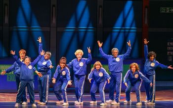 Half Time is based on Dori Berinstein's 2009 documentary movie Gotta Dance, which depicts the formation, development, and first performances of the NETsationals, a hip-hop dance team composed of 10 women and one man, all sixty years old or older, who were recruited at open auditions to perform at halftime of 2006-2007 NBA New Jersey Nets games. The musical plays out over the course of three weeks, from the selection of the seniors (eight female, one male) for the dance team through their initial half-time performance. In this fictionalized story, the basketball team is identified as the New Jersey Cougars, and the seniors augment an existing bevy of youthful hip-hop dancing female cheerleaders known as the Cougarettes. The senior citizen team is initially named Fifty Shades of Grey. While there is humor in the name, it is an example of a problem which plagues this production. For Half Time makes the mistake of caricaturing the newly hired seniors. Initially and for most of the first act, several of the seniors are shown to be so incompetent that it is strikingly unbelievable that they would ever have been selected from among "over 150" auditionees. Muriel (Kay Walbye) is helplessly "legally blind"; the hobbled Dorothy (Georgia Engel) cannot walk without a cane; and Mae (Lori Tam Chinn) is a ditz who blissfully is oblivious to any dance instructions. This approach makes it appear that the New Jersey Cougars, and correspondingly, the Half Time creative team, are out to milk laughs from seniors' limitations by ignoring the reality that many seniors can still "cut a rug" on the dance floor. Half Time's ageist introduction of these successful auditionees sets the tone for the lack of consequential conflict which enervates much of the first act. The more focused and dramatic second act manages to provide a considerable measure of interest and entertainment. On its plus side, the uneven book by Bob Martin and Chad Beguelin does in time engage our interest in the protagonists and their plight. Matthew Sklar is the principal composer, although the score includes the music for three songs which were completed by Marvin Hamlisch before his passing. The cleverly rhymed, felicitous lyrics are by Nell Benjamin. Mitchell has produced a lively, well-acted, -sung, and -danced production. Among Half Time's highlights are: