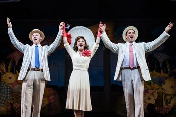 While cleverly adapted to best fit the stage, make it more palatable for today's sensibilities, and provide a plethora of song and dance numbers, the book by Gordon Greenberg and Chad Hodge essentially leaves intact the movie's charming premise, characters and story. As the curtain rises, song and dance trio Jim Hardy (Nicholas Rodriguez), Ted Hanover (Jeff Kready), and Lila Dixon (Paige Faure) (Bing Crosby, Fred Astaire and Marjorie Reynolds, respectively, in the movie) are performing their last show in a shabby Hoboken nightclub. Jim, who is tired of the pressures of his hardscrabble career, has bought a farm in Connecticut, where he intends to settle down with Lila. After Lila accepts his marriage proposal, they learn that their agent has booked them a six-week tour culminating with an engagement at a premiere Chicago nightclub. Jim remains committed to his farm, but Lila backs out on him to take on the tour with Ted. In Connecticut, Jim finds a new romantic interest in Linda Mason (Hayley Podschun), a schoolteacher who lost the (family) farm when she couldn't make a go of it after her father passed on. In short order, Jim finds that he cannot make a go of the farm, either. However, while being visited by New York performer friends, Jim hits on the idea of saving the farm by putting on celebratory shows for all of the major holidays, and renting the house's many rooms to holiday guests. Linda, who was briefly a singer before returning home to care for her father, performs in the shows. Ted visits the farm after Lila has abandoned him and their act, and when he shows an interest in Linda as a dance partner, Jim fears a repeat of what happened with him and Lila. Along with a fresh cast, the original creative team has come to New Jersey to recreate in full, the festive Broadway production that played at Roundabout's Studio 54 October 6, 2016 through January 15, 2017. Director Gordon Greenberg, who originally developed Holiday Inn at Connecticut's Goodspeed Opera House, deftly manages the task of recreating all of the details that enriched his Broadway production while bringing to the Paper Mill stage the freshness and enthusiasm of a newly minted production. A part of his success is likely attributable to his casting of several performers who bring their own style and personality to their roles. The set has been altered to add a performance apron in front of the orchestra pit, and Greenberg employs it (along with the auditorium floor and aisles) most effectively. Paper Mill veteran Denis Jones provides top of the line choreography for this happily old-fashioned, dance-filled show. And it is a great pleasure to watch this proficient and energetic cast perform numerous dance numbers featuring which I would describe as tap, jazz, and musical theater choreography. "Shaking the Blues Away" is an exhilarating showstopper which stylistically brings to mind Susan Stroman's signature use of props. The extremely clever set design by the reliable Anna Louizos provides myriad festive and eye-filling decorations which please, while providing space for Jones' expansive choreography. Alejo Vietti provides delightfully showy, colorful costumes to complement Louizos' stage pictures. They appear to be informed by the costumes from the 1942 Paramount film. Nicholas Rodriguez displays a strong, more Sinatra than Crosby-like voice and brings a bit of a ladies' man swagger to the role of Jim Hardy. Jeff Kready as Ted Hanover dances up quite a storm. His exciting "Let's Say It with Firecrackers" is up to Astaire's standard. And Fred Astaire reportedly took 37 takes to film this number, which is about the number of times that Kready will be performing it on the Paper Mill stage. Hayley Podschun is an appealing Linda Mason, and Paige Faure brings a humorous edge to Lila Dixon. Both handle their song and dance chores in exemplary fashion. Ann Harada brings spunk and warm good humor to the role of Jim's caring and meddlesome housekeeper Louise. At the end of the day, the raison d'etre for Holiday Inn is the product of the man considered by many to be the greatest of all American songwriters, Irving Berlin. As closely as I can ascertain, this stage adaptation has added ten Berlin classics to the film score. Essentially well integrated, they include such wonderful classics as "Cheek to Cheek," "Blue Skies," "Heat Wave," and "Shaking the Blues Away." The quality of the songs carried over from the motion picture are truly extraordinary. I think all but one were written for the movie. And that one is "Easter Parade," which first appeared in the Broadway revue As Thousands Cheer. Other hit songs from the movie include "Be Careful, It's My Heart," "You're Easy to Dance With," "Happy Holidays," and "I've Got Plenty to Be Thankful For." And, as if you didn't know, there was another little song that was written for Holiday Inn and became the best-selling single of all time, "White Christmas," sung by Bing Crosby. Need anyone say more? Irving Berlin's Holiday Inn, through December 30, 2018, at Paper Mill Playhouse, 22 Brookside Drive, Millburn NJ. Evenings: Wednesday - Sunday 7 pm/ Matinees: Thursday, Saturday and Sunday 1:30 pm. Box Office: 973-376-4343; online: www.papermill.org. Creative: Cast:
