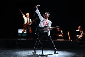 Passing Strange is a coming of age story about a young black man from suburban Los Angeles whose frustration with the mundane aspects of everyday life and love of music lead him on a quest to discover something "real." The unnamed youth leaves his mother and his church for Europe, traveling first to the bohemian paradise of Amsterdam and later to the nihilistic anger of Berlin. The play is thematically rich, raising meaningful questions about the purpose of art, the interplay between racial identity and individual authenticity, and the importance of familial love. The musical numbers that drive the show's action get off to a bit of a slow start. "Baptist Fashion Show" is clever, but we never get a number with the strength and joy of a gospel choir. Fortunately, the score picks up quickly and never backs down again. Narrator Kris Coleman's powerful vocals and easy rapport with the audience are irresistible, but it is Jamar Williams' exhilarating performance as the story's youthful protagonist that has the greatest impact. Convincingly awkward as a teenager being dragged to church by his mother, the Youth metamorphosizes over the course of the play. In the second act's most powerful musical numbers "Identity" and "The Black One," Williams performs with an astonishing intensity that leaves the audience breathless. Kimberly S. Fairbanks gives an equally intense though necessarily more restrained performance as Mother. Sexually charged without being slutty or vapid, Savannah L. Jackson is pitch perfect as Marianna. Taysha Marie Canales is grounded as Berlin love interest Desi. Anthony Martinez-Briggs and Lindsay Smiling give physically demanding and emotionally fierce performances in a variety of roles. Rounding out the cast is a talented and energetic four-piece band. Director Tea Alagic places the band on stage and, with the aid of Scott Pask's sparse set and Thom Weaver's dramatic lighting design, blurs the line between concert and musical theater. The result is often thought provoking, occasionally moving, and always a damn good time. Passing Strange, through February 18th, 2018, at the Wilma Theater, 265 South Broad Street, Philadelphia PA. For tickets call the box office at 215-546-7824 or visit www.wilmatheater.org. Cast The Band Artistic Team |