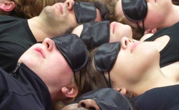 Upon arrival, each participant is given a list of instructions. Go upstairs, put your shoes and worldly possessions under your chair, place the blindfold over your eyes. After that, an angel (one of seventeen students from Rowan University) silently guides each person toward a dim room and onto a small mat. Everyone starts off lying down, but as the disembodied voicesalways speaking in the second personshift from questions of self-awareness to recall of distant memories, the angels guide the audience to move their own bodies along with the dialogue. The talented Jay Ansill performs his fantastical compositions as each person listens, feels, and moves. The whole thing is impressively well executed and fairly relaxing to boot.