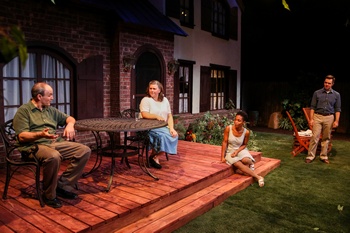 All My Sons is set just a few years after World War II, but the inclusion of some modern costume elements and character interactions makes it clear this story could be told in the wake of any recent military conflict. All the action takes place in the backyard of the Keller family home. Chris Keller (Chase Byrd) has invited childhood neighbor Ann Deever (Nastassja Whitman) for a visit, hoping to propose while she is there. Ann appears smitten, but Chris's parents Kate (Trice Baldwin) and Joe (Paul Kuhn) are not ready to pop the champagne. Kate believes the wedding would be a betrayal to her older son Larry, who was still in love with Ann when he went missing in action more than three years before. Joe is also opposed, but it is unclear whether his concern is for Kate's well being or something more sinister. Through the cascade of personal revelations, exposed family secrets, and plot twists that follow, Miller offers some poignant lessons about the cost of war and the nature of good and evil. Paul Kuhn's set design (yes, he also plays Joe) for the Keller's yard is as elaborate as the entryway house, and the initial transition from late night crickets to early morning storm is excellent. After that, the production has a bit of a rocky start. Miller may be to blame for the awkward opening dialogue, but the cast cannot find a way to make the first ten minutes any less uncomfortable to watch. Fortunately, things start to improve quickly. Byrd conveys a sense of internal struggle that gives Chris a satisfying depth. Kuhn maintains quietly insidious optimism that is especially effective in the frenetic second act. There is an authentic father-son chemistry between the pair. Baldwin transitions seamlessly between moments of aching vulnerability and vicious manipulation. Often portrayed as a pitiable annoyance, Whitman imbues Ann with clarity and strength of purpose that elevates the production. Carlo Campbell's brief but memorable appearance as Ann's older brother George is absolutely riveting. Arthur Miller's plays are some of the most iconic American classics, but it is no secret that they can feel didactic and outdated. With just a few subtle choices Carducci's production avoids the worst of Miller's moralizing and misogyny. Breathing a new life and relevance into All My Sons is no easy task, but the Curio Theatre Company's attempt is a success. All My Sons runs through November 3, 2018, at the Curio Theatre Company's home theatre, at the Calvary Center for Culture and Community, 4740 Baltimore Avenue, Philadelphia PA. For tickets, visit www.curiotheatre.org or call 215-921-8243. Cast: Crew: |