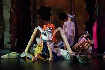 Misha Kachman's evocative set design is bolstered by Thom Weaver's excellent lighting (a special challenge in a world where all the electrical power has gone out). Costume designs by Megan Healey move the story through three entirely distinct looks. The ensemble, composed of four HotHouse Company members and three Philadelphia favorites, is a thrill to watch. As the title suggests, Mr. Burns is inspired by Matt Groening's iconic animated series "The Simpsons." The television show serves as a cultural touchstone for the characters in the play. The particular episode that ties the acts together is 1993's "Cape Feare," based loosely on the 1962 movie Cape Fear. There are three stylistically distinct acts with two intermissions. Act one takes place a few months after an unspecified disaster brings down America's power grid. A small group of people have gathered inside a shipping container. To keep their spirits up they recall their favorite lines and sequences from the "Cape Feare" episode. When a stranger appears, the discussion turns toward missing loved ones and what happens when spent nuclear fuel cooling pools lose power. Lindsay Smiling and Ross Beschler give especially powerful performances. Act two takes place seven years later. People are coping well enough to desire entertainment for now, but there are signs that things might be deteriorating. Our original group, plus one newcomer, have formed an acting troupe. Together they travel and perform old "Simpsons" episodes complete with commercials. A commercial featuring Smiling and Mary Tuomanen is well done, but the real highlight of the act is the ensemble's passionate discussion about their repertoire. Unfortunately, a play within a play scene from the "Cape Feare" episode is over stylized and the pop music medley is gloomy where is should be campy. Act three is set 75 years further into the future. There is no explicit discussion of what the world has become; we can only infer from the performance on stage. That performance is a barely recognizable rendition of "Cape Feare" in the style of a Greek tragedy, but with a new operatic score by local composer Michael Kiley. At first the audience seems a bit confused. Is the depiction of Montgomery Burns as a post-apocalyptic Gritty-meets-Jean-Valjean with giant puppet hands supposed to be funny? But after the first twenty minutes it is clear that the tone here is dead serious. The ensemble sing and play their own instruments, with Tuomanen, Sarah Gliko. and Jered McLenigan as standouts. Grim, surreal, and eventually grotesque, this is not the sort of humor that will please everyone. But if you like your laughs with a side of desperation, dystopian nostalgia, and a few operatic vocals, this is theater worth seeing. Mr. Burns, a post-electric play runs through November 11, 2018, at The Wilma Theater, 265 S. Broad St., Philadelphia PA. Tickets are available at wilmatheater.org, by calling 215-546-7824, or by coming to the theater. Cast: Artistic Team: |