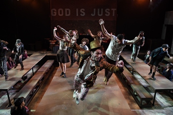 For better or worse (but almost certainly better), the only things in this production that actually suggest a futuristic dystopia are the costumes (designed by Christina Bullard), and even those feel more charmingly timeless than bleak future. What we get instead is a fairly straightforward production of Lionel Bart's excellent musical adaptation with a top-notch cast and a few serious production errors. Fortunately, the good outweighs the bad and this Oliver! is well worth your watch and wallet. The good: Lionel Bart's score is as wonderful as ever. Favorites like "Food, Glorious Food," "It's a Fine Life," "Oom-Pah-Pah," and "Reviewing the Situation" are all performed without the aid of amplification. There some technical issues created by the absence of microphones (more on that later), but it's wonderful to really hear the voices, and the natural sound is appropriate to the gritty material. The ensemble is as good as the material they are working with. Benjamin Snyder (at the performance I attended, but he alternates with Lyam David Kilker) is utterly endearing as Oliver, with the skill to pull off the demanding vocals. Fagin, the man in charge of London's juvenile criminal enterprise, is played by Wallace Acton with a wild-eyed enthusiasm that conveys both joy and malice. Jacob Entenman conveys sprightly energy with a dark edge as the Artful Dodger. If Entenman is dark edge, then Brock Vickers is malicious savagery, from the collar of his leather trench to the tip of his ebony boots. Vickers imbibes Bill Sikesa fellow thief and associate of Faginwith unapologetic brutality. Sikes' girlfriend and Oliver's eventual savior is Nancy. I have always watched Oliver! wishing that Nancy would wise up and get the hell out of Dodge, but Hanna Gaffney makes it clear that Nancy is a self-deluded victim of domestic violence. Chemistry seems like the wrong word, but the something that Vickers and Gaffney share takes the production to the next level. Gaffney's doleful rendition of "As Long as He Needs Me" is heartrending. The bad: The musical accompaniment provided by The Mudfog Four. The quartet is solid and the orchestrations are good, but they are located too far downstage. Despite their best efforts, the band frequently drowns out even the strongest singers. Clear soundproof panels or body microphones (I really do like the absence of amplification, but not at the cost of clarity) would solve a problem that distracts throughout the show. Equally distracting are the audience members seated at long tables integrated into the set. They are constantly craning their necks to see the action and jerking their hands back to avoid a crushed thumb. Because so much performance space is devoted to those tables, the action that takes place on the rest of the cross-shaped stage feels weirdly cramped. Burns successfully employed an unusual stage setup during last season's My Fair Lady, but the layout for Oliver! is gimmicky and confusing. There were a lot of young people at the performance I attended. A mature six years is a reasonable age minimum, but there were younger kids there who seemed to enjoy the performance. Just keep in mind Oliver! contains moments of intense violence and a lot of dark themes. Oliver! runs through December 23, 2018, at the Quintessence Theatre Group's Sedgwick Theatre, 7137 Germantown Ave., Philadelphia PA. For tickets visit www.QTGrep.org or call 215-987-4450. Cast: Crew: |