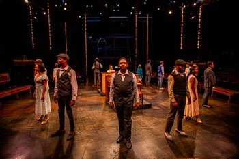 The musical is an adaptation of E. L. Doctorow's 1975 historical fiction novel about America at the dawn of the 20th century. There are a trio of protagonists; a successful Harlem musician, Coalhouse Walker, Jr. (Nkrumah Gatling); the matriarch of a wealthy household in New Rochelle known only as Mother (Kim Carson); and Latvian Jewish immigrant Tateh (Cooper Grodin). As their stories develop and intertwine, we see how class, gender, and race impact each character's struggle to achieve the American dream. Terrence McNally's book is potent, and the score with lyrics by Lynn Ahrens and music by Stephen Flaherty is a tremendous mix of spirituals, ballads, gospel, and of course, ragtime. The ensemble bringing Ragtime to life at the Arden is exceptional. Gatling is an electric and endlessly sympathetic Coalhouse Walker. Grodin's understated and earnest performance is riveting. Robi Hager exudes youthful frustration and idealism as Younger Brother. However, it is the women in the cast who make this production truly extraordinary. Carson brings down the house with an absolutely gripping rendition of "Back to Before." When she said, "no one will ever do enough for this child," an audible gasp swept through the audience. Mary Tuomanen is a force to be reckoned with as radical anarchist Emma Goldman. Jessica Johnson's powerful vocals and emotional energy stand out as Sarah's Friend and member of the ensemble. To keep the audience close to the action, the Arden's F. Otto Haas Stage has been set up in the round with an octagonal floor-level stage. Audience members are arranged on seven sides of the theater and multi-level scaffolding occupies the last section. Several small platforms around the outer walls house additional acting space as well as the scattered orchestra. Staging in the round can be tricky, but Nolan makes sure there is something visually interesting happening from every vantage point. To that end, the superlative cast is constantly creating small, special moments in every corner of the space. From where I sat we were treated to a fantastic view of Foreman's nimble hands and one silent instant of connection between Coalhouse and Younger Brother as powerful as a ballad. There are only six designated musicians, but thanks to a bevy of instrument-playing cast members and powerful vocals the score sounds positively lush. Music is central to the plot and theme of Ragtime, so having a cast who can pick up their instruments and play along is wise. Making sure no instrument becomes lost or overpowering could easily become a challenge in such an intricate and complicated setup. Fortunately, music director Vince Di Mura and sound designer Elizabeth Atkinson use some audio magic to create a sound that is rich and well balanced even as the piano is pushed around the stage. Although it takes place in 1904 and is based on a book written in 1975, the structural inequities that beset the characters in Ragtime are still rampant in America today. It may not offer any solutions, but this moving, intimate production gives the audience a chance to grapple with the weight of these injustices in a way that feels deeply personal. Whether you are in it for the entertainment or the education, this is a production you do not want to miss. Ragtime runs through October 27, 2019, at Arden Theatre Company, F. Otto Haas Stage, 40 N. 2nd Street, Philadelphia PA. For tickets and information, call 215-922-1122 or visit ardentheatre.org. Cast: Crew: |
