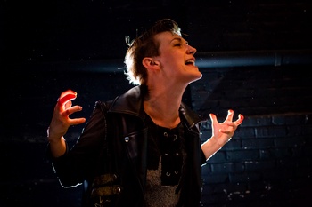 As with Homer's classic text, Lisa Peterson and Denis O'Hare's An Iliad starts nine years into the war that Paris kicked off by stealing beautiful Helen away from King Menelaus of Sparta. We meet mighty Achilles and noble Hector, Greek soldiers clash against Trojans, and a pantheon of powerful and petty gods tip the scales one way and then the other. Under Rebecca Wright's masterful direction, Tuomanen tells the story as though she stood on the shores of Troy, saw the Greek military encampments with her own eyes, and loved each soldier who fought and died in the battle. That sense of individual emotional connection is potent. And devastating. Our poet also connects directly with the audience, updating references and imagery to suit a modern American lexicon. The incorporation of modern military references is an effective way of making the ancient stories feel relevant, but it also informs the play's strong anti-war themes. Throughout the story we are reminded that war is always brutal and horrific. That the people who control and benefit from military conflict are rarely the ones who pay with their lives. And that war takes a devastating toll on soldiers and civilians, friends and families, parents and children in endless expanding circles. Jordan McCree's excellent sound design and haunting original music add richness and texture. Jillian Keys' stark set gives Tuomanen plenty of different areas and levels to work with, even in the Bob and Selma Horan Studio Theatre's limited blackbox space. Maria Shaplin's dramatic lighting design ratchets up the emotional intensity. Each element accentuates Tuomanen's exquisite performance in the surprising, intense, and distressingly relevant An Iliad. An Iliad runs through December 15, 2019, at Arden Theatre Company, 62 N. 2nd Street, Philadelphia PA. For tickets and information, visit ardentheatre.org. Featuring Mary Tuomanen |