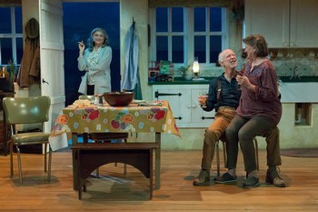All of the action takes place within the cabin that Hazel and Robin have been living in since the tsunami damaged their beloved farmhouse. Steadfastly upbeat Hazel (Marcia Saunders) maintains her daily regimen of yoga and sunscreen while coping with the disaster's aftermath and limited access to electricity. Her husband Robin (Graham Smith) keeps himself busy during the day and drinks too much homemade wine at night. When former friend and coworker Rose (Janis Dardaris) shows up on their doorstep after many years abroad, the animosity between her and Hazel is clear, but the purpose of her visit remains obscure for some time. The cast has real chemistry. Marcia Saunders' down-to-earth intelligence feels wholly authentic. Graham Smith gives an energetic and multifaceted performance. Janis Dardaris maintains a fierce and foreboding presence throughout. Daniel Zimmerman's realistic interior set is truly impressive and Marla Jurglanis' costume designs are spot on. Dennis Parichy's dynamic lighting design sets the tone and creates a sense of time pressing forward. Unfortunately, neither the lighting nor the ensemble adequately convey a sense of peril. Watching Adams' production, it is too easy to forget that the meltdown happened only a few months before and miles away. Without a palpable sense of dread motivating the action, the play becomes untethered in spots, particularly toward the end where lofty issues of personal responsibility, maturity, and environmental impact overshadow both interpersonal issues and nuclear fallout. Some of the blame for this lies with Kirkwood's script and its strange lack of detailed information about the accident itself or the subsequent impacts. In a room full of nuclear scientists there is frustratingly little discussion of the accident and its consequences. Some awkward transitions and a couple of hard to swallow plot devices also hamper the impact of The Children. When the stage lights come up, Rose is supposed to be ignoring a nose bleed accidentally inflicted by Hazel, but there is no blood visible. That gushing blood, the sense of seriousness and doom and foreboding is exactly what's missing from this otherwise solid production. The Children is still very interesting and entertaining, but I cannot shake the sense that it could be so much more. The Children runs through February 9, 2020, at the People's Light's Steinbright Stage, 39 Conestoga Road, Malvern PA. For tickets and information, call the box office at 610-644-3500 or visit www.peopleslight.org. Playwright: Lucy Kirkwood Cast: Crew: |