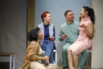 The biggest question Goldfinger's work asks is: If we choose not to make the personal sacrifices necessary to slow the pace of climate change now, what kind of sacrifices will our children's children be forced to make instead? Babel takes place one or two hundred years in the future, when Philadelphia has become a coastal city and the resources necessary for survival are scarce. To ensure the safety of the human race, America has implemented eugenics-based population control. Every fetus is genetically tested for intelligence, health and behavior. Those that pass will live in the comfort and safety of a society that is nearly free from disease and violence. Those that do not pass are aborted or doomed to spend their adult life in a place dubiously referred to as "the village." The setup may be bizarre, but Goldfinger's characters lead lives nearly identical to our own. Finally pregnant after eight years of trying, Renee (Anita Holland) and Dani (Amanda Schoonover) are adorably nervous. Their frayed nerves and deep love are evident as they gently debate the importance of Renee's fairly hilarious prenatal exercises. Jamie (Frank Nardi Jr.) and Ann (Bi Jean Ngo) are their best friends who, as it turns out, are also going to be first-time parents. Political opinions about the eugenics program become much more personal when it is time for their own fetuses to get tested. Holland is proud but vulnerable as Renee, channeling a mix of fear and joy that will be familiar to any expectant parent. Holland's evolution over the course of the play is beautiful and her delivery of the final line is epic. Sharp and in control, Schoonover radiates confidence. There is a lovely chemistry between them, but I felt less compatibility between the two couples. Bi Jean Ngo is on point as meek but neurotic Ann. I don't want to give anything away, so I'll just say that Frank Nardi Jr. takes some challenging material and makes it sing. There is also room for improvement. A handful of sequences go on for too long, slowing the pace of the production. The monastic simplicity of the set does not mesh with the very comfortable lifestyle being portrayed. If people are still enjoying red wine and air travel, shouldn't there still be photographs and knickknacks? Finally, the climactic scene needs to be even more shocking and dramatic. Even with these issues, Babel is a revelatory work and Theatre Exile's production is superb. Go see it for one unique evening of entertainment, but do not be surprised if Babel is on your mind for many nights to come. Babel runs through March 8, 2020, at Theatre Exile, 1340 S. 13th Street, Philadelphia PA. For tickets and information, please visit theatreexile.orgor call 215-218-4022. Cast: Crew: |