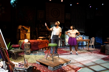 Amidst the chaos of Harlem's 1964 race riots, Bill is looking for a model he can paint into the last panel of his triptych on Black Womanhood. His friends Cynthia and Sonny-Man bring by spunky Tommy, a woman whose home been destroyed in the riots. Bill thinks he knows everything there is to know about Tommy as soon as they meet, but he could not be more wrong. Wallace has gathered a top-notch cast for his first solo directing project at the EgoPo: Monroe Barrick is funny and sympathetic as neighborhood character Oldtimer; Andre G. Brown is wonderfully quixotic as Bill; Brennen S. Malone is authentically hip as Sonny-Man; and Cynda Purnell's interactions with Malone are fun to watch. But Ontaria Kim Wilson steals the show and takes the entire production to the next level. Along the way she pulls off a fantastic transition from unpolished schlub to smoking hot siren. Marie Laster's immersive set design is effortlessly inviting. The spectacular ensemble is remarkably natural in their interactions and emotional arcs. Together they create a truly intimate experience. Most of the evening feels marvelously like relaxing in a good friend's apartment. The 1964 riots loom large in Wine in the Wilderness, but violence never takes center stage. This is an intimate portrait of growth and love, full of positive energy. A defiant joy. And something to commiserate about. If Bill and Tommy can evolve and connect in such difficult times, perhaps we can too. If you've been waiting for a show worth coming back to in person, this is the one. EgoPo Classic Theater's Wine in the Wilderness runs through January 30, 2022, at The Louis Bluver Theatre at The Drake, 302 S. Hicks St., Philadelphia PA. For tickets and information, please visit www.egopo.org or call 267-273-1414. Cast: Crew: |