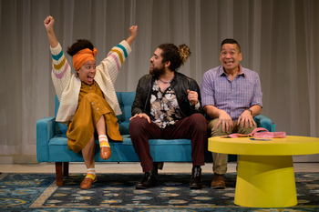 Although it is performed without an intermission, Kiss can be divided into three distinct phases. The first is a hilariously over-the-top soap opera style romantic comedy set in Syria. There are surprise marriage proposals, dramatic confessions, love triangles, and broken hearts aplenty. The talented ensemble keeps the audience laughing even when the twists and turns seem a bit silly. When the romantic comedy ends, so does the first phase of the play. In the second phase the cast drops their romantic comedy personas to set up for a talk-back with the audience and the author. In phase three things get really bizarre and intense. Director Fadi Skeiker has put together the perfect ensemble to bring this captivating work to life. Anthony Martinez-Briggs brings an easygoing, self-assured attitude to all of the characters he portrays. Justin Jain has a manic sort of vigor that elevates the play's funniest and most intense moments. Both actors are excellent, but the two female leads absolutely blew me away with their provocative and passionate performances. Even though she is always playing an actress, Sarah Gliko's over-the-top turn as the soap opera's spurned lover contrasts gorgeously with her other roles in a way that is both satisfying and enlightening. Taysha Marie Canales evokes dramatically different energies during each phase of the play, but she conveys a magnificent gravitas every moment she is on stage. Jian Jung's dynamic set design and Reza Behjat's excellent lighting evolve with the play. The groundbreaking video projections by Alan Price, the director of the University of the Arts' Center for Immersive Media, takes things to the next level. The use of cutting-edge projection mapping technology has to be seen to be believed. The Wilma is my favorite place to see interesting, unexpected and thought-provoking theater in Philadelphia. Kiss is all that and more. I cannot wait to see what they do next. Kiss runs through February 19, 2023, at the Wilma Theater, 265 S Broad Street , Philadelphia PA. For tickets and information, please visit wilmatheater.org, call the box office at 215-546-7824, or visit the box office. Cast: Creative: |