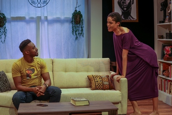 The Light opens with Rashad (Sesay) nervously getting ready to welcome his girlfriend Genesis (Bey) home from work. Sesay is instantly adorable. Bey exudes confident energy from the moment she strides on to the stage. Together they feel every bit the young couple in love. There is a wonderful intimacy in the way they give each other a hard time and decompress from their day together. It is the night of their second anniversary, and Rashad has something special planned. Everything is going great until Rashad reveals he has tickets to a concert featuring an artist Genesis cannot stand. The way Rashad and Genesis slip from everyday conversation into the treacherous territory of past regret and rushed judgment is uncanny. Sesay and Bey deliver visceral performances; the most joyful moments and darkest struggles are both delivered with remarkable authenticity. Witnessing the intimate conflict feels uncomfortable, but that discomfort is essential to the story Webb is trying to tell. Nick Embree's set design is pitch perfect and contributes to the sense that we are really in Genesis' apartment. Tiffany Bacon's costume design is also on point. I especially like the transition from professional attire to comfortable loungewear for Bey. The Light grapples with difficult issues and thorny questions about communication in romantic relationships. How much of ourselves are we obligated to share with our partner? What happens when our instinctive reaction turns out to be hurtful or wrong? Do we need to share past trauma to move forward? Webb's drama offers some profound insights, but no easy answers. I suggest you spend the evening with Genesis and Rashad and grapple with their issues for yourself. The Light runs through February 26, 2023, at Theatre Exile, 1340 S. 13th Street, Philadelphia PA. For tickets and information, please visit theatreexile.org or call 215-218-4022. Cast: Crew: |