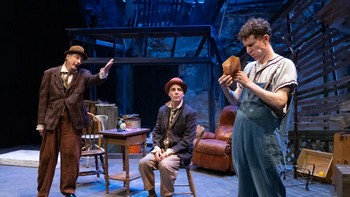 The Puzzle does not have a traditional story structure, but rather functions as a fluid and surreal series of events. It begins with a two clowns, Finneas and Quinton, living out a sort of loop in their strange scrap-yard home. The pair are finally about to complete a jigsaw puzzle (or are they?), but their plans are upended when a non-verbal young man wanders into their space and unintentionally hides several crucial pieces of the puzzle. The Boy forces Finneas and Quinton to rethink the way they communicate and eventually allows them to shift the way they experience the world around them. The unexpected blend of clowning and neurodivergence delivers a powerful message about the power of empathy and connection. Professional clown Daniel Passer was captivating as upbeat Finneas, bringing an authentic sense of fun and wonder to the production. David Shiner portrayed his foil Quinton with a relatable sense of skepticism and frustration. Arguing, conspiring, and retelling the same jokes, the vibe between Passer and Shiner was somewhere between an old married couple and the characters from a Beckett play. Co-directors David Shiner and Bill Fennelly clearly gave the cast ample freedom to play, and the drama was best when Passer and Shiner were just clowning around with each other and Michael Stahler. Stahler explicitly drew on his experience as an autistic actor to play The Boy and his performance was stellar. Every interaction Stahler had with the "clowns"–and with Shawn Fisher's darkly creative set–was full of meaning and soul. Unfortunately, the slow pace and lack of narrative progress ultimately made for a disjointed and slow-moving experience despite the best efforts of this talented cast and creative team. I would love to see another production of The Puzzle that keeps the genuine interaction and insight into non-verbal individuals, but tightens up the pace and improves the narrative flow. The Puzzle had an extended run through June 4, 2023, at the at Hedgerow Theatre, 64 Rose Valley Rd, Media PA. For more information, visit www.hedgerowtheatre.org. Cast: Crew: |