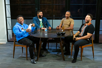 Bonez blends all of the elements of classic gothic horror with the experience and perspective of Black men living in modern America. The play begins with Trey (Keith A. Wallace) preparing his posh new apartment for a night of beers and bones–a regional nickname for dominoes–with his buddies Derek (Elijah Jones), Remello (Eric Robinson Jr.), and PJ (John Clarence Stewart). Not long after the game begins, a strange banging sounds from the apartment next door. When the drinks and conversation begin to flow freely, the banging gets more intense. As the stakes get higher, the audience begins to suspect that a simple night of fun was never exactly what Trey had in mind. Broadnax's riveting script wrestles with masculinity, intimacy, and childhood trauma. A true horror story right to the core, Bonez reveals how these issues distort the souls of men into the uncanny demons of violence and fear. Wallace, Jones, Robinson Jr., and Stewart bring the play to life with fierce and frightening urgency. The edge of panic that occasionally waivers into Wallace's academic attitude instantly creates a sense of unease. While Robinson Jr. brings a harshness to Remello, it feels almost uncomfortably authentic. The entire ensemble deliver on both the play's insightful dialogue and its frighteningly unexpected twists and turns. The set design by Michael Carnahan is effective, but imperfect. Trey's apartment feels flat, but the city skyline looming behind a large balcony window gives an impressive sense of height and depth. That perspective, along with Nic J. Vincent's lighting design and Lee Taylor projections, creates some intensely scary moments. I do not want to say too much about how the whole ghastly affair is resolved, but because so many horror stories disappoint at the finish it seems important to acknowledge that Broadnax gets this ending right. Yes, there is bravery in the face of violence, strength in unity, and catharsis in the verbalization of long-suppressed mental anguish. But generational trauma runs deep and the ghosts that have haunted our souls for centuries will not be exorcised easily. That truth alone is more than enough to fear. Bonez runs through October 15, 2023, People's Light, Steinbright Stage, 39 Conestoga Road, Malvern PA. For tickets and information, please visit peopleslight.org or call the box office at 610-644-3500. Cast: Creative: |