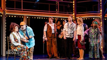 Rudetsky and Plotnick's swift moving and goofy plot sets the action at the grand opening of a casino boat anchored on the Hudson River in New York City. We quickly meet the cast of characters, all of whom are modeled on traits of characters you'll immediately recognize from any of those 70s disaster films. The boat's owner Tony Delvecchio (Christian Fary) has cut corners to maximize his profits which reporter Marianne (Alyssa Armstrong) has come on board to investigate. It turns out Marianne's old boyfriend Chad (Joe Ogren), whom she left at the altar, is also on board as a waiter with his friend Scott (Matthew Paris). The ship's main performer Jackie (Cara Chumbley) is busy managing her singing duties, pining for Tony, who she believes plans to marry her, and mothering her 11-year-old twins Ben and Lisa (both played by Emilee Clapp). Throw in the older, married couple Shirley and Maury Winters (Carolyn McPhee and Wes Martin), has-been disco diva Levora Verona (Brooklynn Grace), a nun with a former gambling addiction (Lynzee Foreman), the disaster expert Professor Ted Scheider (Tyler Gallaher), who frantically tries to let the passengers know that a natural disaster is right around the corner, along with piranhas, sharks, an earthquake, fires, tidal waves, and some beloved 70s soft pop and rock songs and you end up with a perfectly silly and hilarious show that uses many well-known pop hits to move the plot along. Danny Gorman has directed several shows at ABT and here his work is excellent. This isn't a show with a deep message but a comical spoof that uses props, sight gags, and jokes to create hilarious bits, and Gorman manages to use everything at his disposal to ensure the laughs are big and the hilarity shines. It also helps that the cast don't hold back making sure their performances hit all of the required comical beats the silly script requires. They also all have fantastic singing voices that truly bring each of the well-known pop songs vibrantly to life under Lizzie Webb's music direction. Ryan Howell's two-level set design has some fun tricks up its sleeve as do the props by Jamie Hohendorf-Parnell, which all add to the comical hijinks. Lenora J. Nikitin's costumes and the wigs by Chris Zizzo play up the horrific and hilarity of the styles of the 1970s, as does the cheesy choreography by Kurtis W. Overby. I especially love how the act two costumes show the effects of the disasters the characters have come in contact with. The lighting design by Heather Reynolds is bright and focused and Jesse Worley's sound design features some fun sound effects and clear vocals from the cast. Disaster! features a dozen main characters, and the script manages to weave them all equally into the action so each gets several moments to shine. As Chad and Marianne, Joe Ogren and Alyssa Armstrong have fantastic singing voices, including Armstrong's hilarious drunken take on "I Am Woman" that takes a dark, dramatic turn into "That's the Way I've Always Heard It Should Be," and Ogren's powerful pipes shine on "Without You" and several other well-known hits. Emilee Clapp is superb as twins Ben and Lisa, with a simple addition of a baseball cap and a deepening of her voice to move from Lisa to Ben. There are a couple of scenes in which Clapp quickly goes back and forth between the two characters that proved to be crowd pleasing moments at the performance I attended. Lynzee Foreman is hilarious as the nun with the gambling addiction; watching her covet and caress the slot machine while singing "Never Can Say Goodbye" and "Torn Between Two Lovers" gets big laughs. Carolyn McPhee is warm and funny as Shirley, the character modeled on the one played by Shelly Winters in The Poseidon Adventure. McPhee's comical facial reactions work wonderfully for this character, who has a fatal illness where the side effects are facial tics, spouting profanity, and obscene groin movements, which McPhee hilariously manages to display all three at the same time. As Professor Ted Scheider, Tyler Gallaher has the right level of seriousness and intensity for a man who has events from his past that haunt him with the desire to save the people around him, if they'll only listen to him. Christian Fary is appropriately slimy, sleazy, condescending, and entirely hilarious as Tony Delvecchio, a man who only cares about himself. As Levora Verona, Brooklynn Grace is warm and winning as the diva who has fallen on hard times. Cara Chumbley has a bright singing voice and the right level of ditziness for the not entirely on the ball Jackie. Wes Martin is charming as Shirley's husband Maury, and Matthew Paris is sweet as the somewhat inept Scott. The small ensemble play multiple characters and victims and each gets a few moments to display their sharp comic chops. Disaster! may not be an excellent musical or one that alters the future of theatre but it does have a plot that manages to weave together the characters and plots of various films in the disaster genre while using the songs of the period of those movies to provide the inner thoughts and feelings of the characters. If you're not familiar with those films or the songs of the 1970s, you might not quite understand why people are laughing around you. However, if you are familiar with those movies and the songs in the show, with a cracker jack cast who happily chew on the scenery, spit it out, and then chew on it some more, sharp comical direction, and humorous creative elements, you should find Arizona Broadway Theatre's production is a hilarious hoot. Disaster! runs through September 15, 2023, at the Arizona Broadway Theatre, 7701 West Paradise Lane, Peoria AZ. For tickets and information, please visit www.azbroadway.org or call 623 776-8400. Director: Danny Gorman Cast: (in order of appearance) |