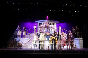 Anything Goes takes place on a ship sailing from New York to England, featuring a cast of characters involving mistaken identities, missionaries, gangsters, and romantic entanglements. With memorable songs like "You're the Top," "It's De-Lovely," "Blow, Gabriel, Blow," and the title number, the show has been a staple in regional theatre for good reason. Since its first Broadway production back in 1934, Anything Goes has been revised a number of times. The 1962 Off-Broadway production was the first to include such songs from other Porter shows as "Friendship" and "It's De-Lovely." In 1987 the show received an exceptional Broadway revival that made several changes to the original script, (the new witty book was co-written by the son of one of the original bookwriters) and incorporated additional songs from other Cole Porter scores. It's this version that Mesa Community College is presenting. Catherine McCreary is excellent as Reno Sweeney, delivering refined singing, winning comedic timing, and enthusiastic dancing; her tap solos are wonderful. Her stage presence is infused with charm and she has a wonderful connection to all of her castmates. Christopher Gallacher portrays Billy Crocker with the right 1930s Manhattan style and charm which makes for a winning performance. While his vocals could be stronger, it's nice to see a production that features Billy in the dance numbers, and Gallacher has fun with those moments. Jack Walton has exceptional comic timing as Moonface Martin, the public enemy disguised as a minister. His singing voice shines and he adds his own lovable touch to the character, making Moonface an audience favorite. Suzy Olson as Hope impresses with her soaring vocals and the ability to convey her character's conflicted feelings. José Andrés Uribe plays the slightly crazy foreigner engaged to Hope, offering a commanding stage presence and creating a lovable character. With bright acting choices, Logan Holmes fleshes out the usually stuffy Elisha Whitney, Billy's boss, into a comic gem. Natalie Ellis brings a brassy delivery and humor to the role of Erma, and Britney Burns is fun as the Hope's often-confused mother. The rest of the ensemble create comical characters and deliver infectious dance routines, thanks to Lauran Stanis' inventive choreography. Also, McKay Moody and Alonzo Regalado's portrayals of the ship's frenzied captain and purser, respectively, add a nice touch to the production. Director Debby Rosenthal, who played Reno in the 2015 Phoenix Theatre production of the show, keeps the musical moving at a brisk pace, using the ship's staircases and platforms and various other set pieces effectively in her staging. She gets bright, comical performances from everyone in the cast and the combination of Rosenthal's sure-footed direction and Stanis' exceptional choreography create many effective moments, including two spectacular numbers that start with just McCreary but then pull in the entire cast and build into showstoppers: "Anything Goes" and "Blow, Gabriel Blow." The large ship deck set design and various other large set pieces by Kara Thompson work well with some nice art deco elements. The period and character-appropriate costumes are rentals, but they are colorful and smart, and Claude Pensis' lighting design creates some lovely stage images, especially during night scenes on the ship. Music director Darin Shryock and the large orchestra achieve a wonderful brassy sound. Anything Goes may be a familiar show, but Mesa Community College offers a solid, colorful, bright, and very funny rendition of the beloved musical. Audiences can expect to leave the theater with smiles on their faces and Cole Porter's catchy tunes in their hearts. It's a jolly voyage that celebrates the timelessness of this classic musical. Anything Goes runs through November 11, 2023, at the Mesa Community College Performing Arts Center, 1520 S Longmore, Mesa AZ. For tickets and information, please call 480-461-7172 or visit www.mesacc.edu/arts/events. Director/Musical Staging: Debby Rosenthal Cast: (in order of appearance) |