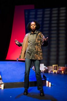 The shooting of Brown ignited weeks of riots and social unrest. A few months afterward, Orlandersmith, commissioned by Repertory Theatre of St. Louis, conducted interviews with dozens of people who lived in the area, and through these intimate conversations weaved together Until the Flood. The diverse cast of characters depicted in the play, white and Black, male and female, young and old, let us hear, first hand, their views and experiences, and their perspectives and reactions to Brown's killing. How they all struggle in their own way to come to terms with the impact of the killing and the damage it causes to themselves, their relatives, friends, and their community is engrossing. Under Elena Conti's impressive direction, with just a change in her vocal inflection, body language, and facial expressions, along with an added costume piece or prop, Ryan L Jenkins' tour-de-force performance breathes life into each of the individuals in the piece. From a retired white police officer grappling with his role in perpetuating racial bias to a young Black teenager who lived in the apartment complex as Brown who is struggling to just make it one more year until he can move away from the area to go to college in California, Orlandersmith's characters are fully realized and deeply human through Jenkins's majestic delivery. I've seen Jenkins in several plays across the Valley and, while she's always been wonderful, she is truly superb here. Tiana Torrilhon-Wood's minimalistic set design, which sets the characters' monologues in and around a shrine to Brown composed of candles, signs, and stuffed animals, allows the audience to focus squarely on the words and emotions of the characters. Stacey Walston's subtle lighting shifts also force attention on Jenkins and the character-appropriate costumes by Jessie Tully, Dawn Conry's effective props, and the evocative sound design by Brianna Fallon, immerse the audience in the storytelling. However, while not every one of the individuals has the views or outcome to their monologue one might think they will, which adds intrigue to the play and forces the viewer to sit up and listen, the play does, somewhat, present a slightly one-dimensional view of race relations in America. There isn't much presented that's new, rather a host of things we've seen in just about every play, film, or TV show that focuses on racial tension and the unjust treatment of minorities by white people. Also, knowing that the characters in the play are fictional composites of the people Orlandersmith interviewed, it does make some of the searing, shocking, and revelatory moments less impactful. Was Dougray, the well-read, educated, white, racist, homophobe who fantasizes lining up the Blacks in Ferguson and gunning them all down to make the city "clean, white, and purified" as it once was, an actual person or did Orlandersmith take bits and pieces of the people she spoke to and add words of her own to create this horrifying individual that, I believe, is the most impactful in the play? Still, the impact of Until the Flood is undeniably powerful and Ryan L. Jenkins' performance will be remembered for years to come. The play is an important and timely piece of theatre that will, most likely, challenge the audience to confront their own views and feelings on racism, Brown's killing and, unfortunately, so many other killings of Black individuals by white people in the almost ten years since this incident happened. Until the Flood runs through March 2, 2024, for Stray Cat Theatre at Tempe Center for the Arts, 700 W. Rio Salado Parkway, Tempe AZ. For tickets and information, please call 480-227-1766 or visit straycattheatre.org. Director: Elena Conti Cast: |