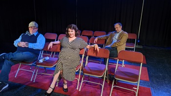 Phoenix playwright Ashley Naftule has crafted a drama that centers on Siskel and Ebert, entitled Roger & Gene, that is set in modern times, even though Siskel died in 1999 and Ebert in 2013. Naftule's play presents an intriguing concept, of which I'll try to avoid revealing too many spoilers, but it's overly long and repetitive and could use a decent amount of editing to tighten it up and make it more impactful than it currently is. Fortunately, the production at Space 55 features three talented actors, so while it's not perfect, it's well acted, interesting, and frequently entertaining. Taking place in a room that is the set of their current review show, the plot focuses on how the friendship of the popular critics is fractured due to their constant bickering, arguing, and competitive nature. As the two men fight over which one of them gets to sit in the "good chair" on the set, they harass each other's physical shortcomings and discuss the confusing producer's notes they receive concerning what they need to change in their delivery in order to make their show resonate even more with the viewers. Their fellow critic, Pauline Kael, occasionally visits to tell them about her current situation reviewing shows on her own. We clearly see how there isn't much love between Roger and Gene and also quickly realize that, while this modern version of the Siskel and Ebert show is familiar, there are also many things that are slightly off and very different. In a world where getting internet clicks and followers, and maximizing profits trump editorial content, Naftule's play poses an intriguing view into what Siskel and Ebert's show would possibly look like today. The dialogue is fresh and often funny and they incorporate modern topics into the piece, such as how artificial intelligence is beginning to take control of art. In a world where AI can compose a song in the style of a famous, dead composer and create art similar to a well-known artist in seconds, what will the future hold? Will movies and TV shows now just be composed of artificial beings programmed to act on cue? Will TV news hosts be an AI composite of a beloved and famous newscaster like Walter Cronkite in order to gain the highest ratings? But where is the heart and the compassion beneath the AI skin? Naftule definitely brings up interesting ideas and poses an intriguing concept, but Roger & Gene takes too long to reveal its truths and Naftule also doesn't always adhere to the rules they've established for the characters and the situations. Naftule incorporates a fun Samuel Beckett-like absurdism in the piece, similar to Beckett's Waiting for Godot where nothing truly happens, there is only one setting, much repetition, and two men wait for a title character that never arrives. Here, the characters are also stuck in a repetitive void and there is plenty of absurdity in the piece. While we do get snippets of reviews of modern films from the duo, they aren't that authentic or sophisticated. Having Ebert say that Barbie was a bad movie because it was only made to sell toys seems odd when, since Naftule does bring up AI in the piece, they could have simply asked one of the AI bots to write a review of the film as if Ebert wrote it and get a response that would be more similar to what an Ebert negative review would have been like. Fortunately, the Space 55 cast is wonderful. Matt Clarke and Steve Wilcox make wonderful sparring partners as Roger and Gene. While they don't attempt to mimic all of their traits, the two actors physically resemble Roger and Gene and they both create fresh, modern depictions of the two famous men. They also are excellent in depicting the boiling anger and hatred these two men have for each other, and their fight scenes, beautifully choreographed by Brian Maticic, are excellent. Pauline Kael wasn't as well known as Siskel and Ebert, so Shelly Trujillo has more lenience in putting her own stamp on this famous female film critic and she brings charm, warmth, a lot of sass, and a huge heart to the character. Director BJ Garrett derives fresh performances from his cast and, while most of the staging is in the first row of the three rows of chairs that represent the TV show set to provide the audience an up-close view of the action, he uses the other rows and sides of the set as well, so the action is varied and less stagnant. Trujillo also designed the costumes, hair, and make-up which deliver familiar depictions of the famous hosting duo, including Ebert's thick mop of wavy hair and the sweater vests he was prone to wear and the changing wigs for the Kael character show the passage of time. Roger & Gene is definitely a timely comedy in how it addresses the current state of the world with AI on the rise, but even with a gifted cast it needs to be tightened and edited to allow its strengths to shine more brightly and its absurdist comedy to sparkle more enthusiastically. Roger & Gene, presented by Space 55, runs through June 16, 2024, at Metro Arts, 1700 N. 7th Ave, Phoenix AZ. For tickets and information, please visit Space55.org. Written by Ashley Naftule Cast: